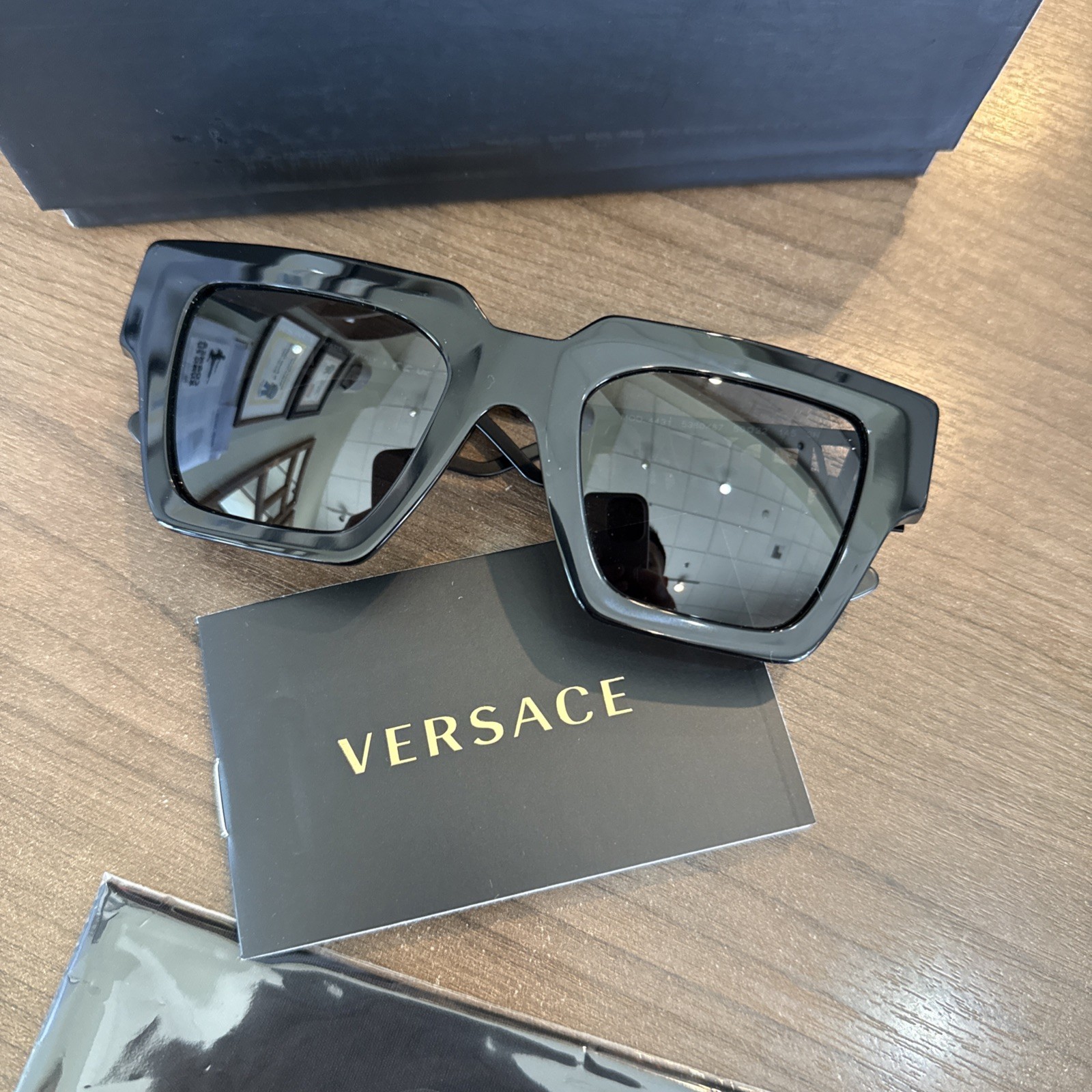 как выглядит New Authentic VERSACE VE4431 5380/87 ALL Black MODERN SQUARE Sunglasses ITALY фото