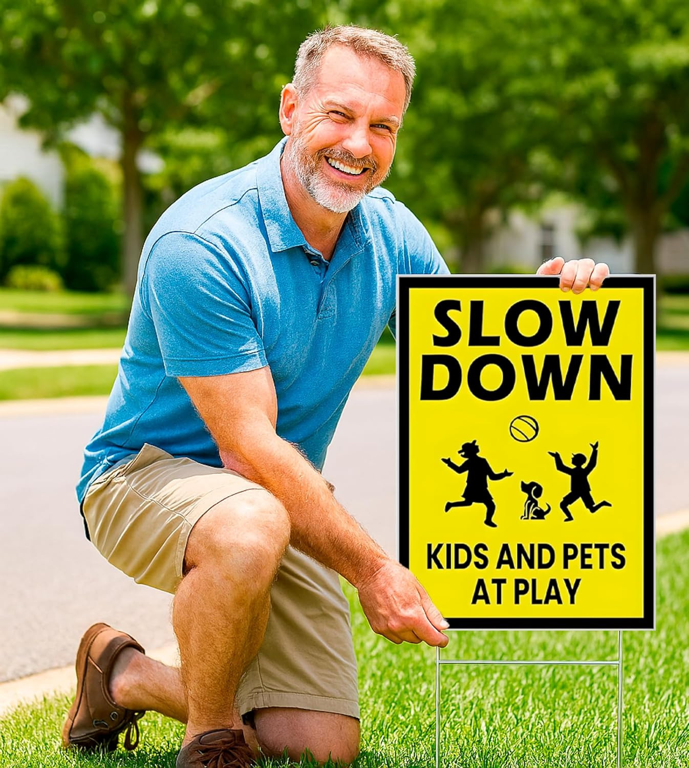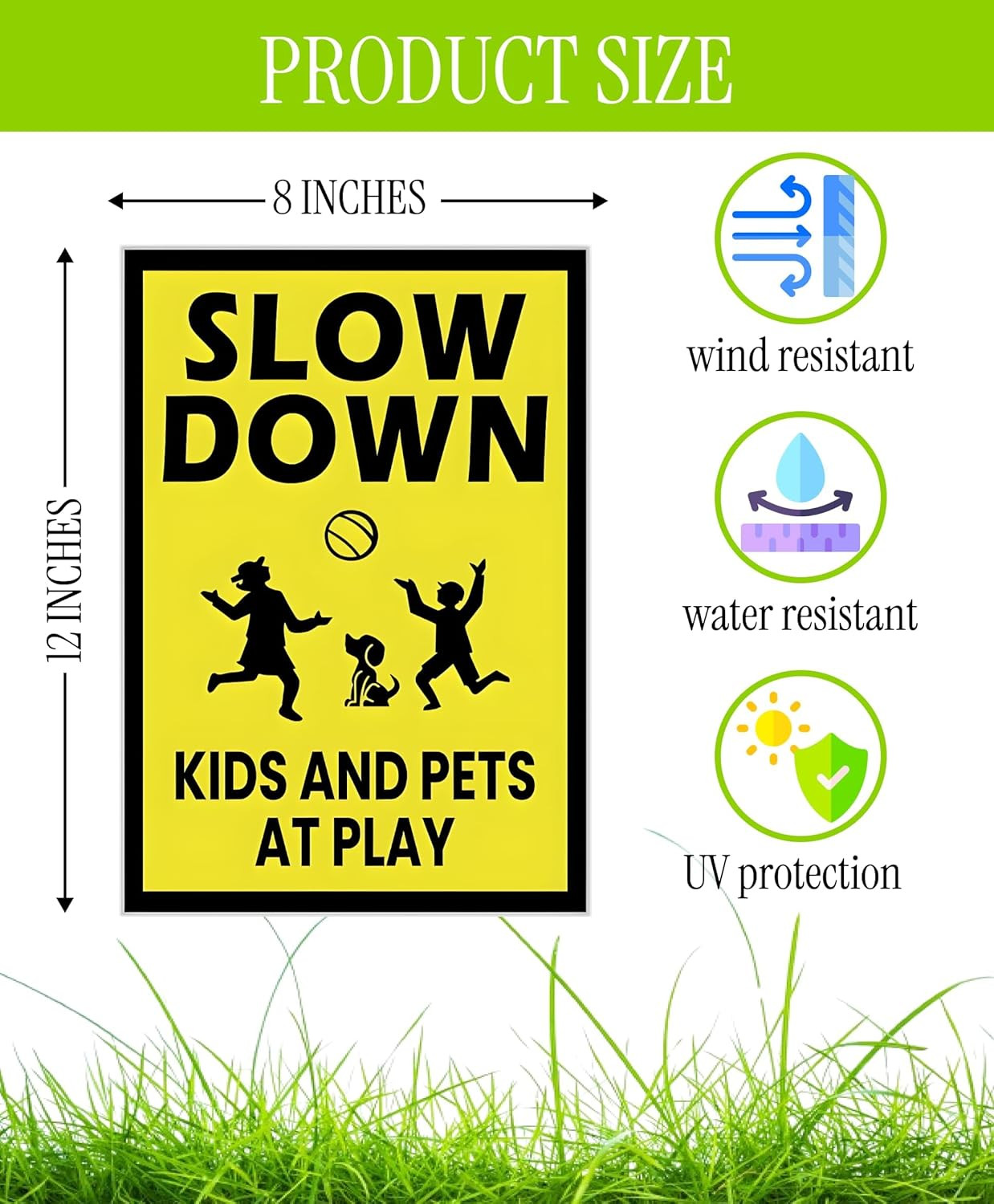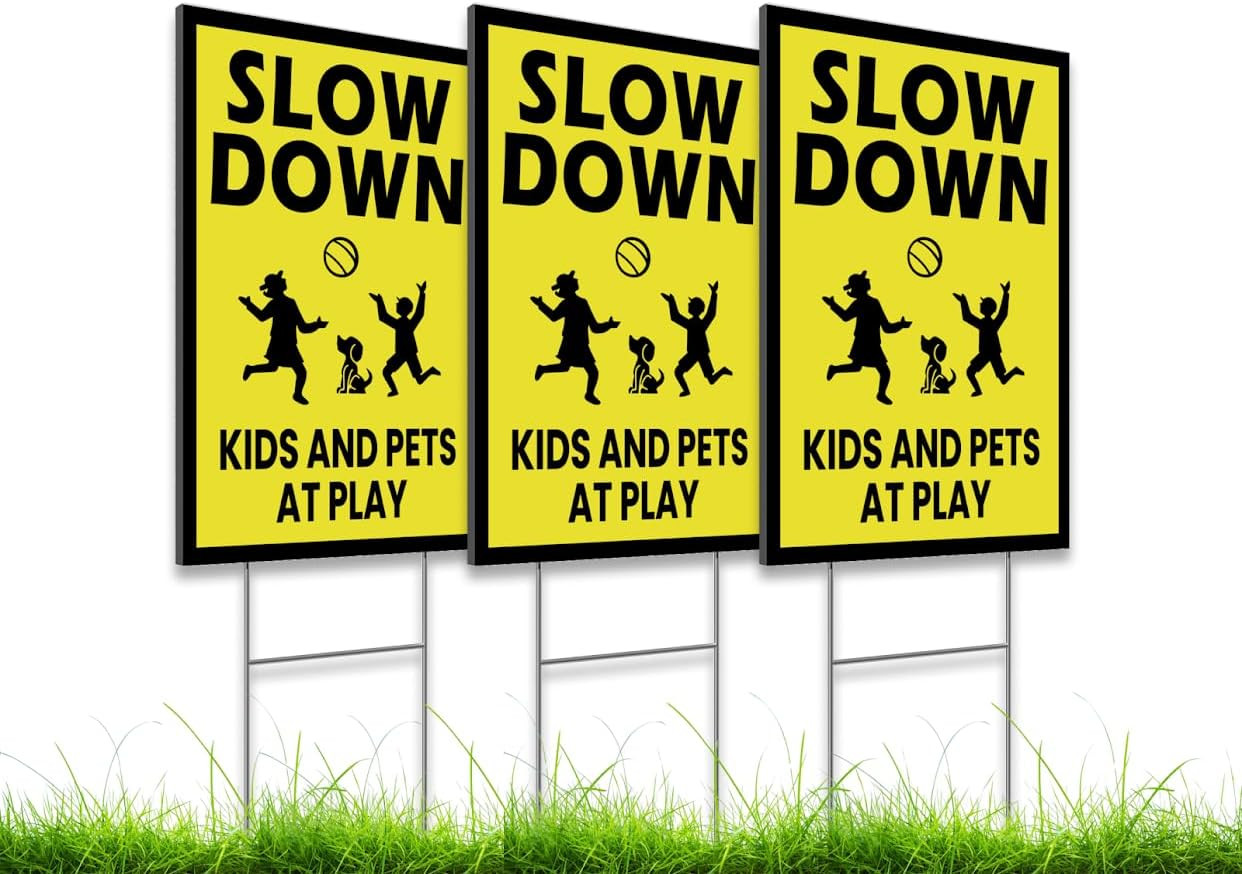 3 Pack Single Sided 8X12 Please Slow down Kids and Pets at Play Yard Plastic Sig