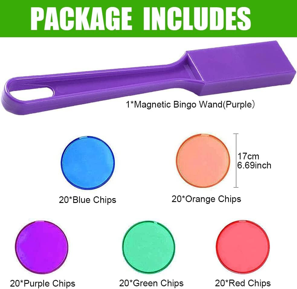 Magnetic Bingo Wand with Metal Ringed Chips for Counting School/Game Chips Plast