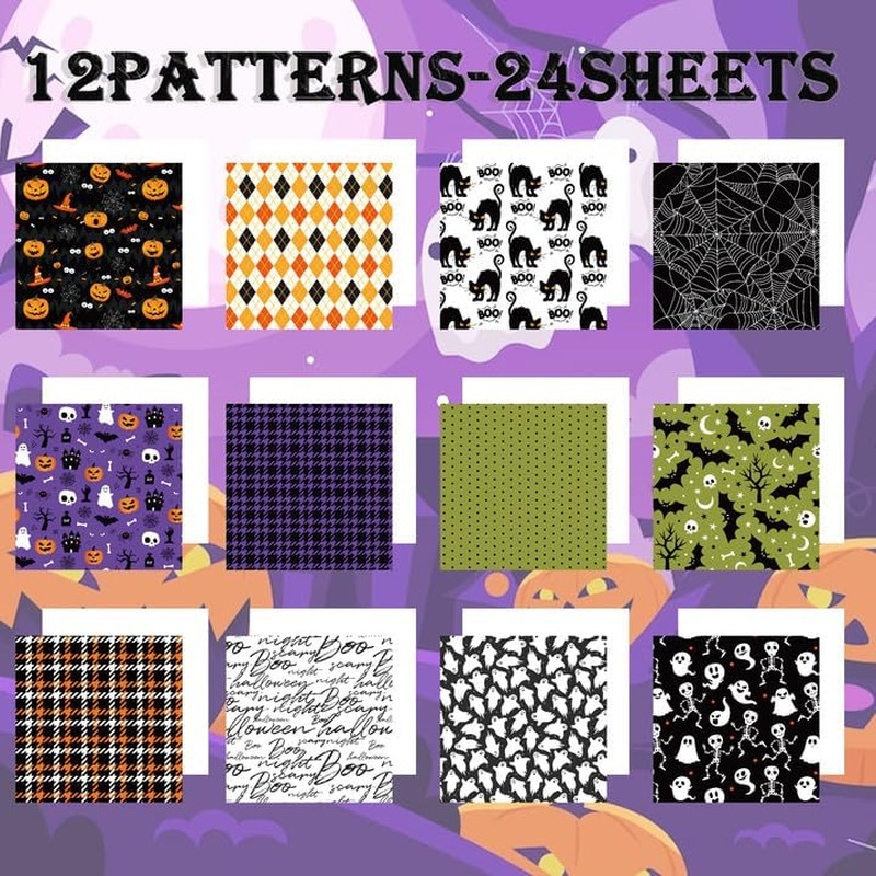 24 Sheet Halloween Decorative Craft Paper, Scrapbook Pad, 6 6 Single-Sided Pat