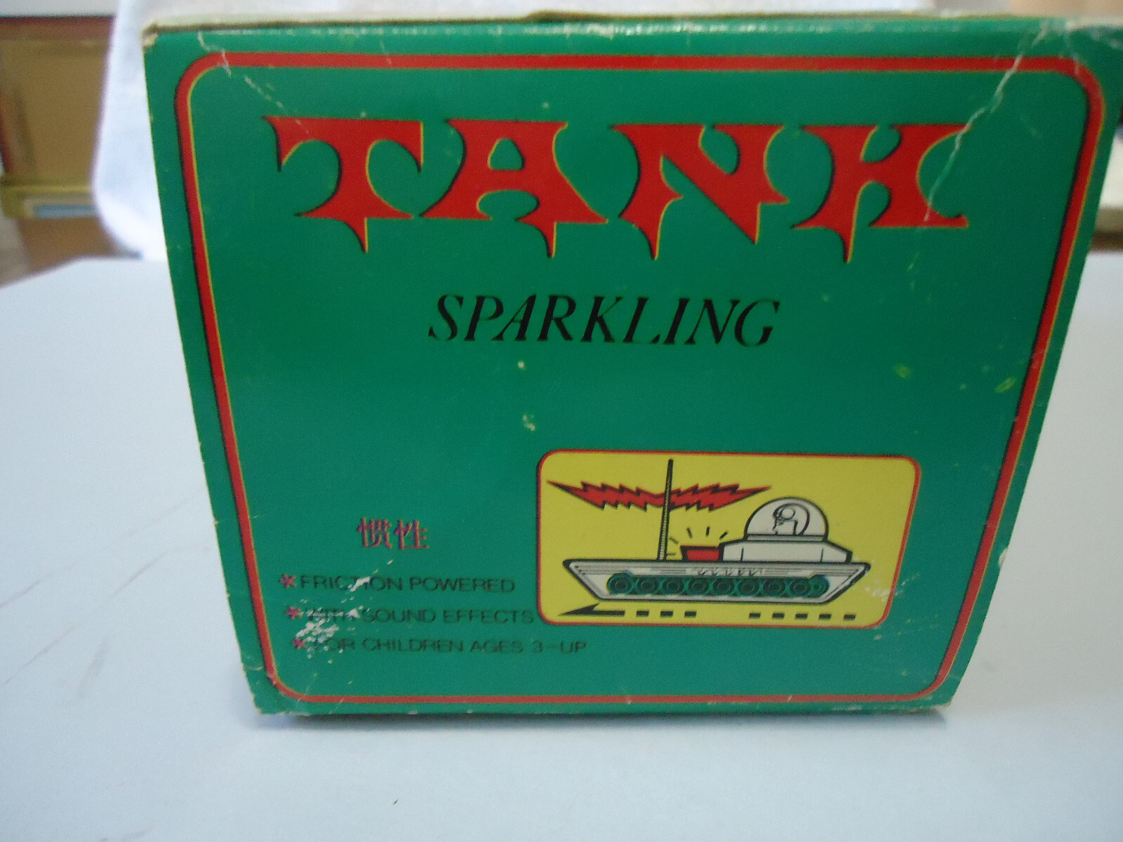Tin Lithograph FRICTION Toy FIRE TANK SPARKS w/BOX 956 EXC