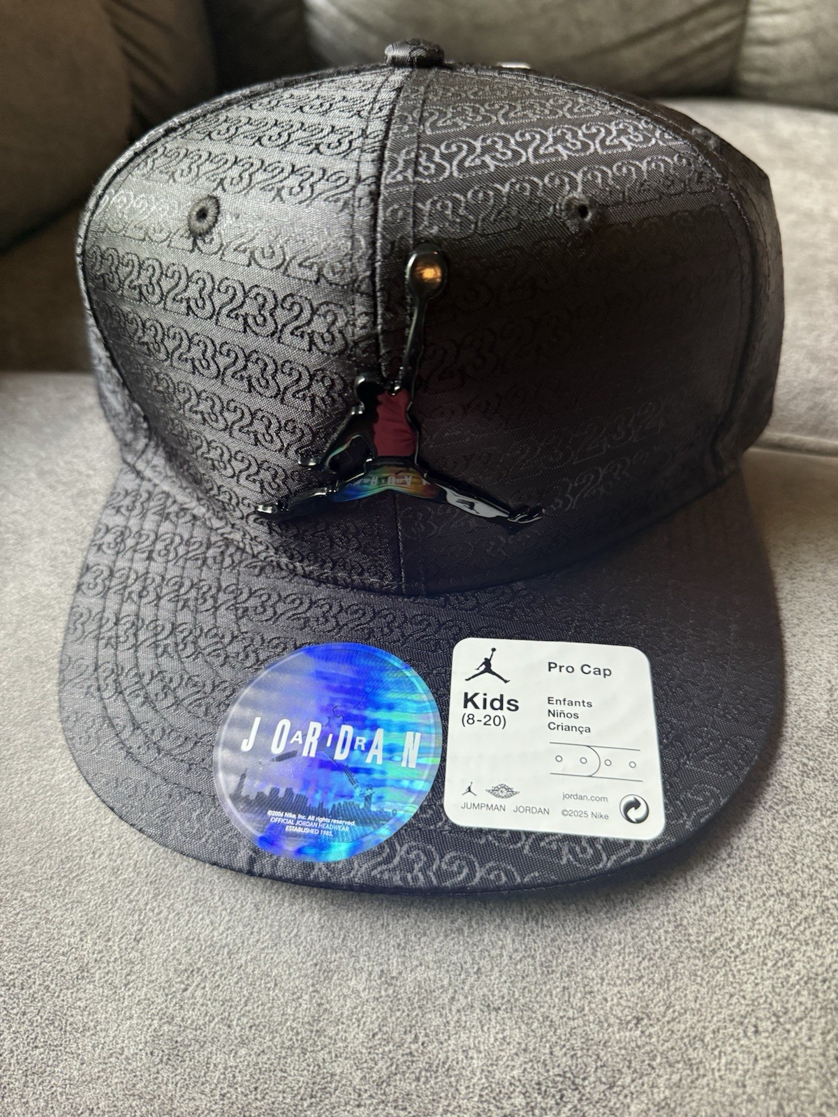 как выглядит Jordan Pro Snapback Hat Boys Black 23 Logo Adjustable Polyester Cap фото