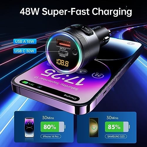 Bluetooth FM Transmitter for Car, 38W PD QC3.0 Dual USB Charger, Hands-Free Call