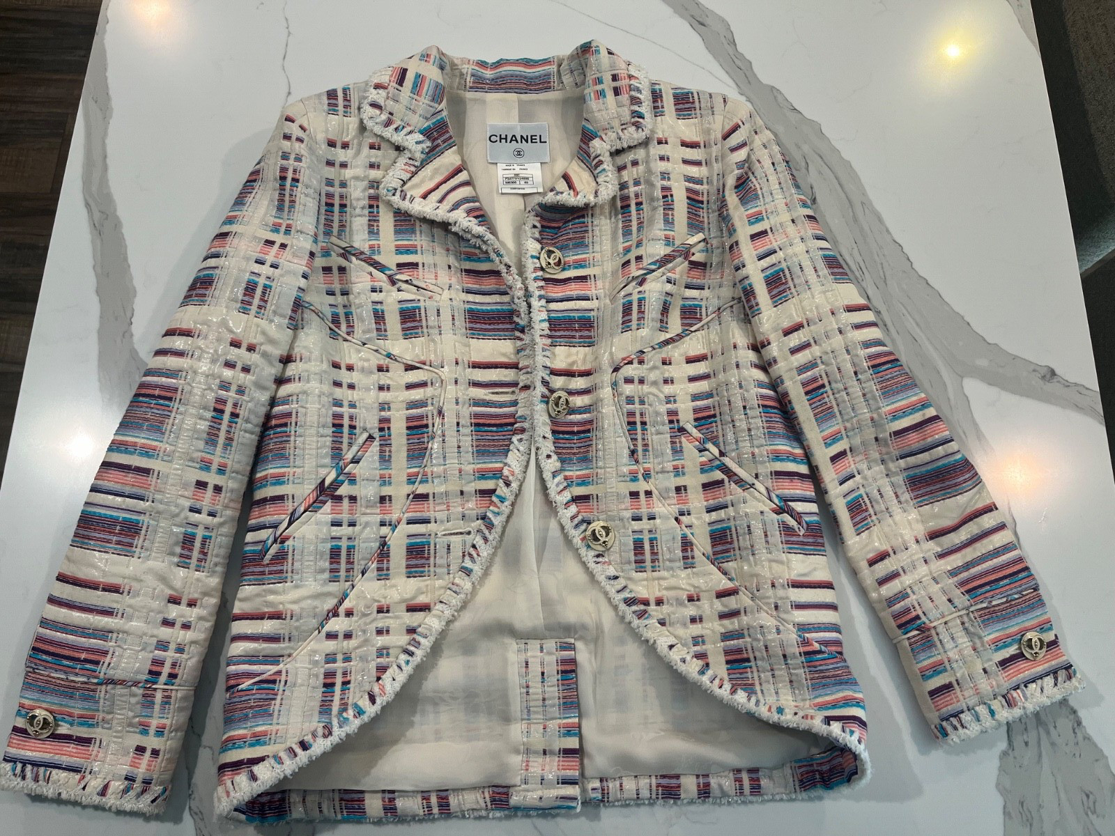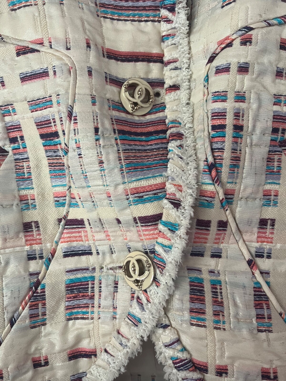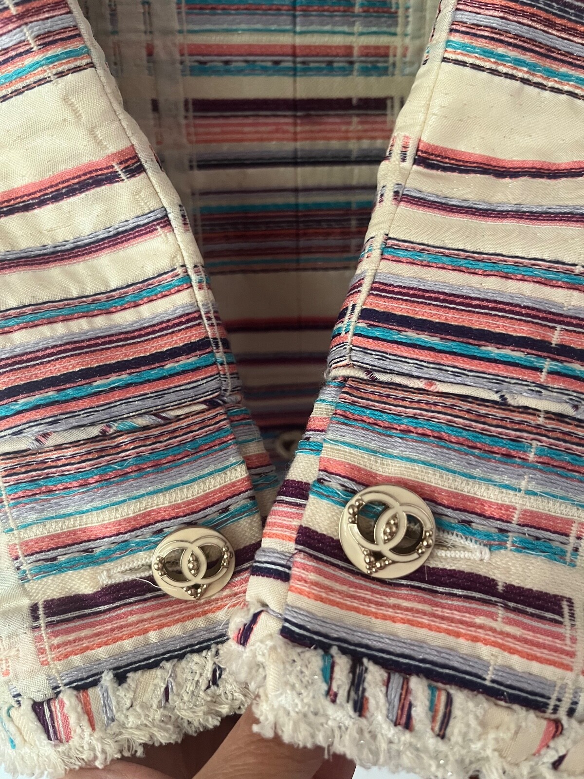 как выглядит Chanel 09C Multicolor Fringe CC Buttons Jacket Size :40 Gorgeous Org 7,865.0 фото