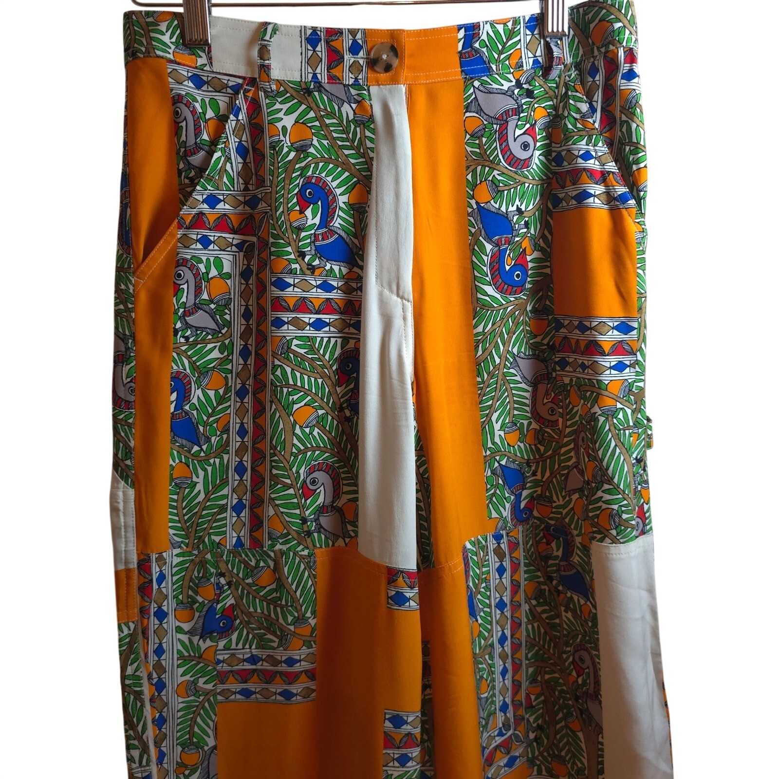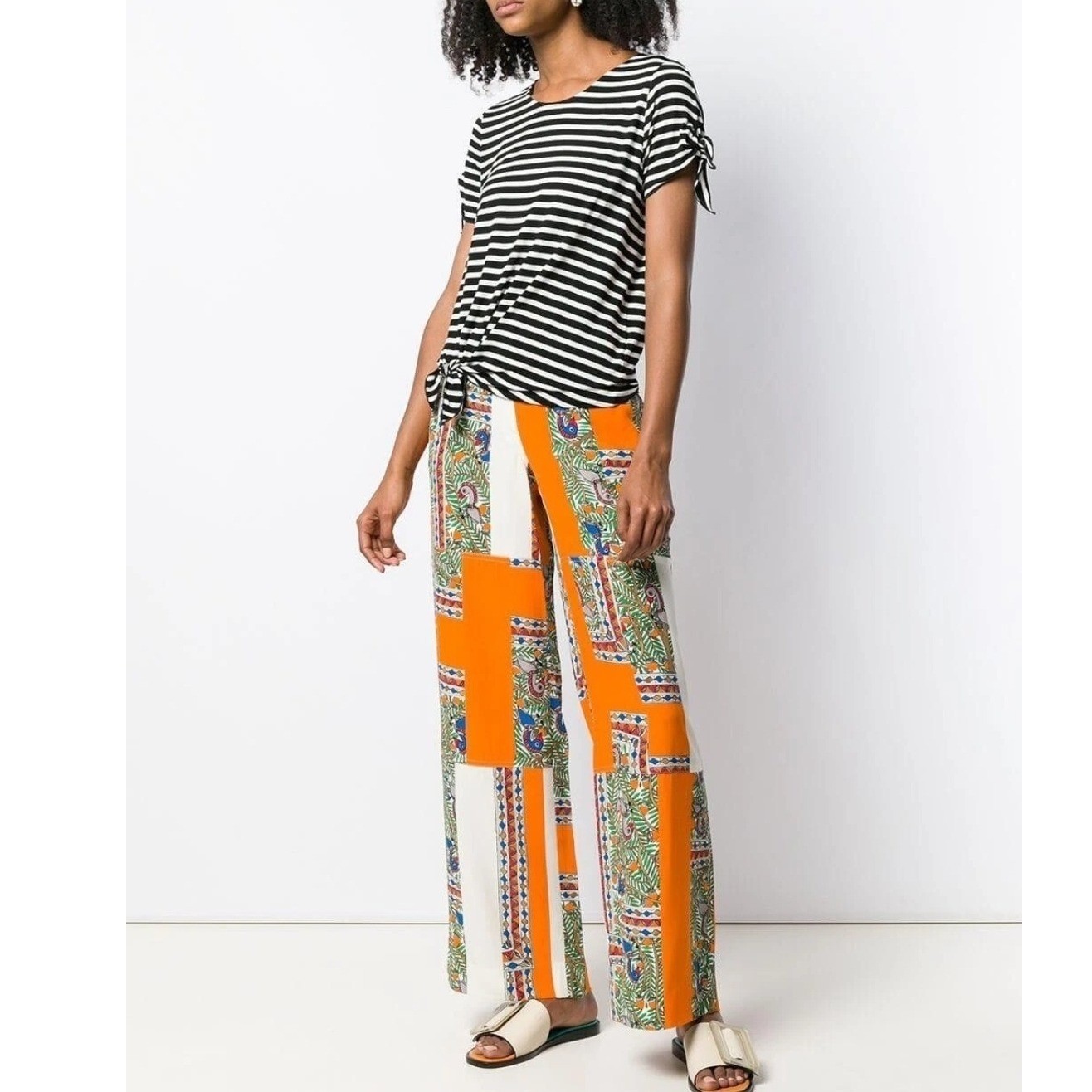 Tory Burch Something Wild Silk Pants 0 SS19 Runway Patchwork Wide Leg