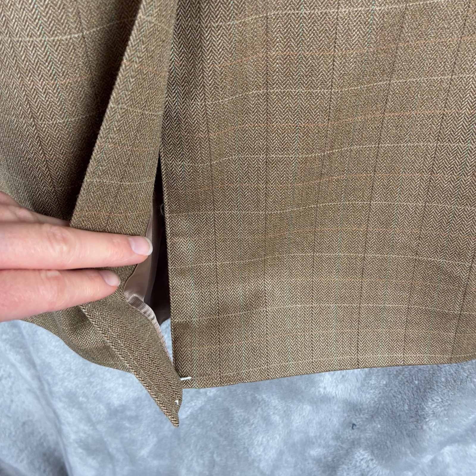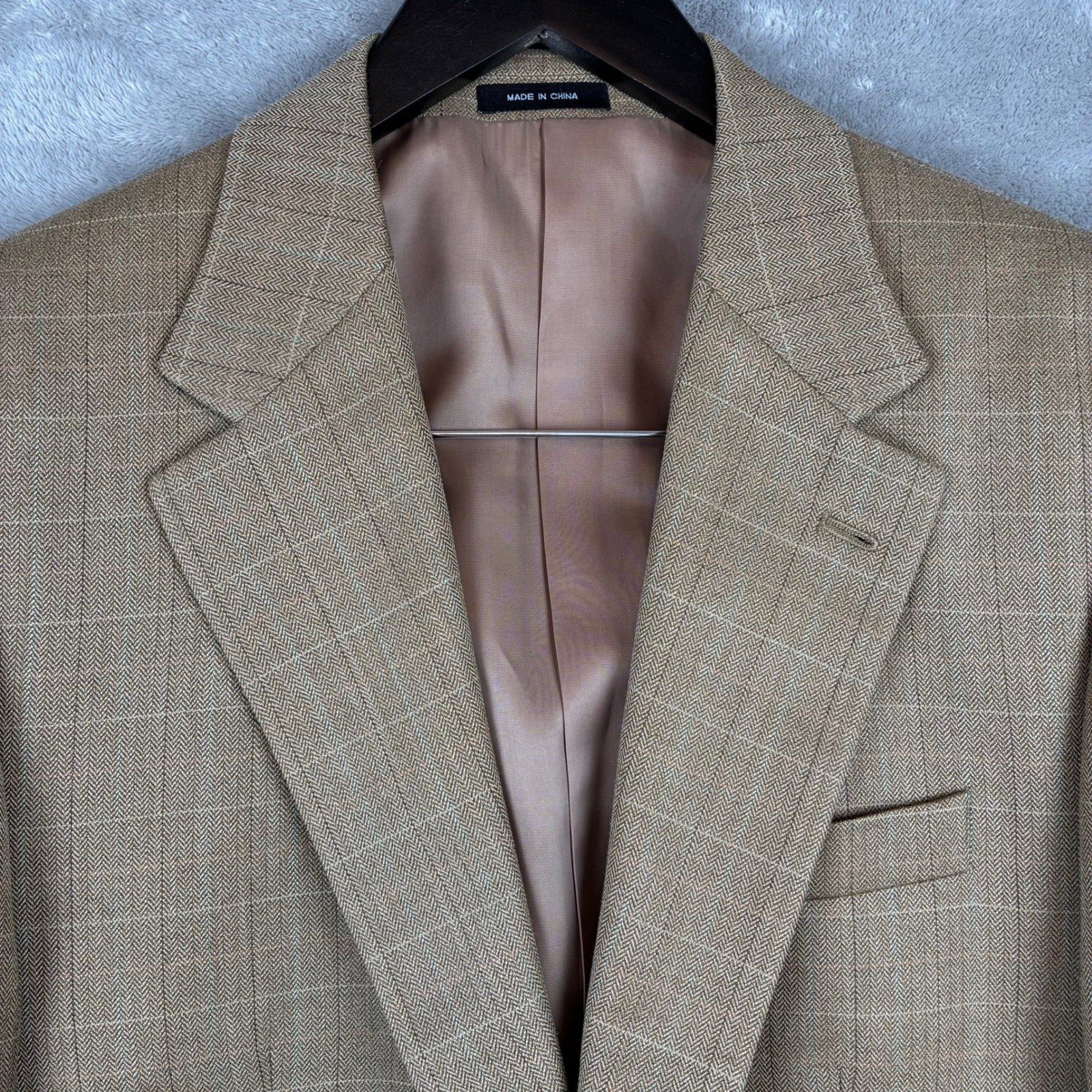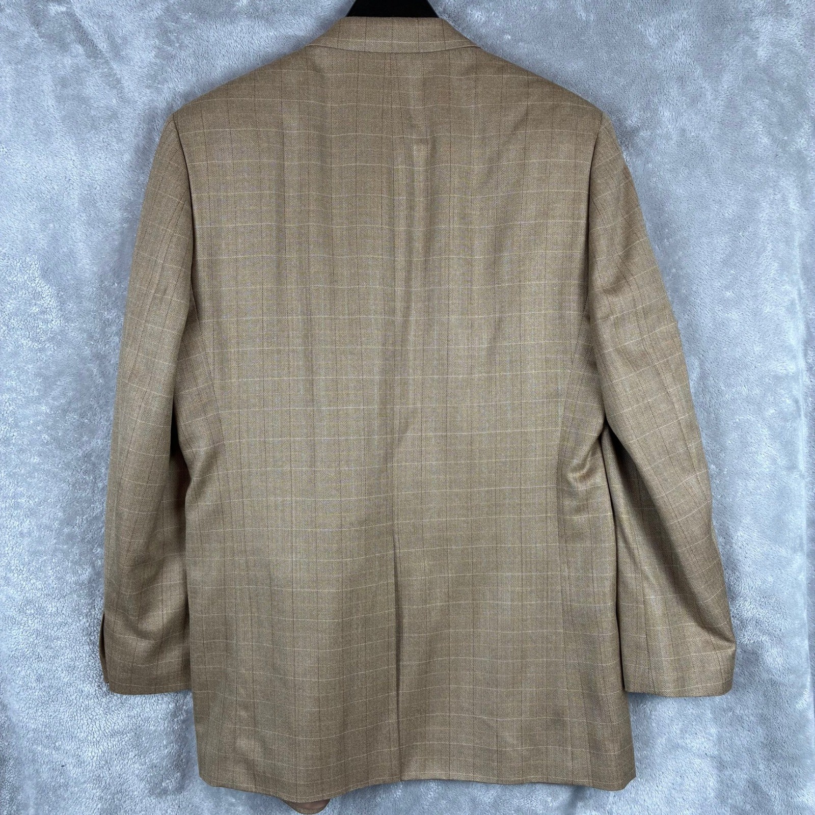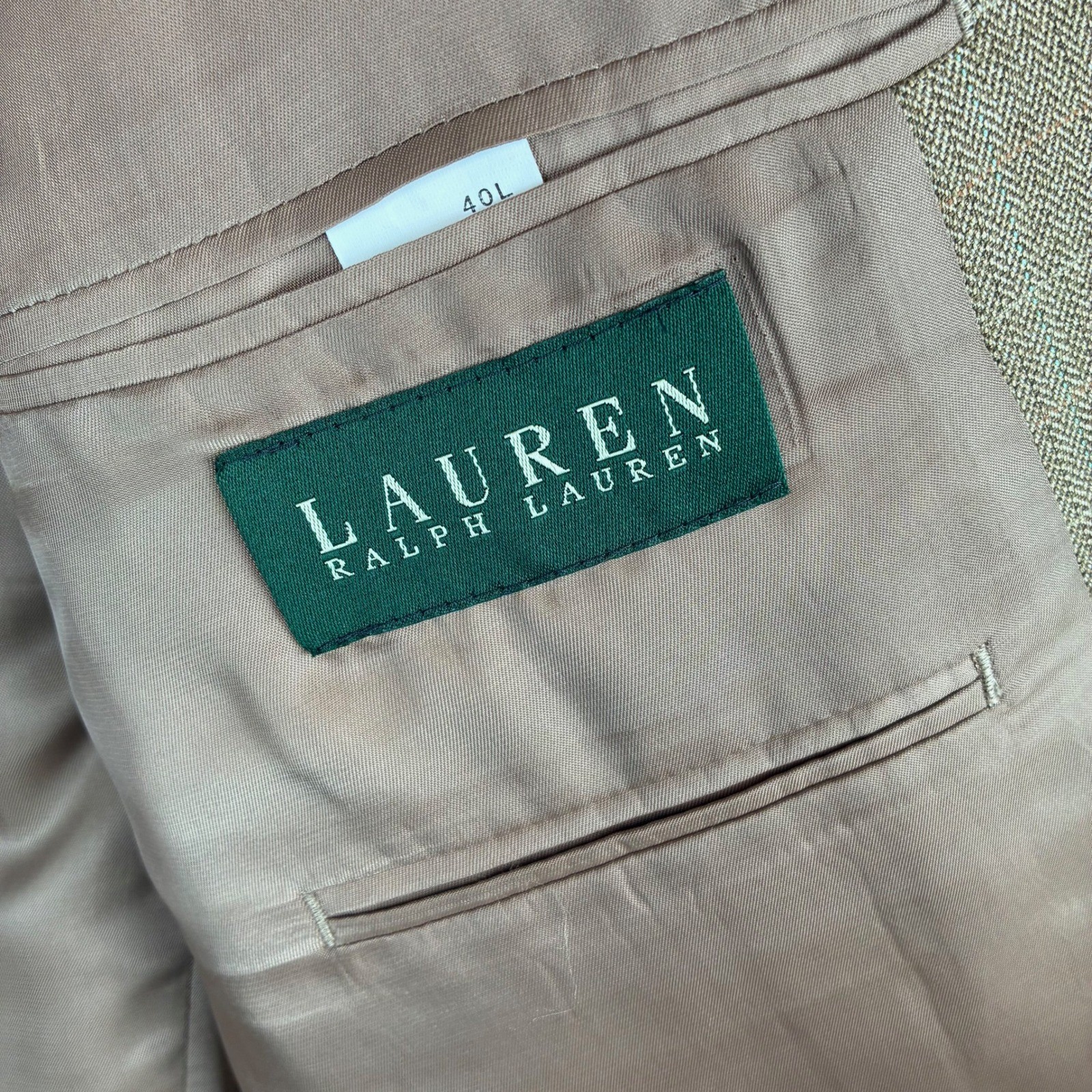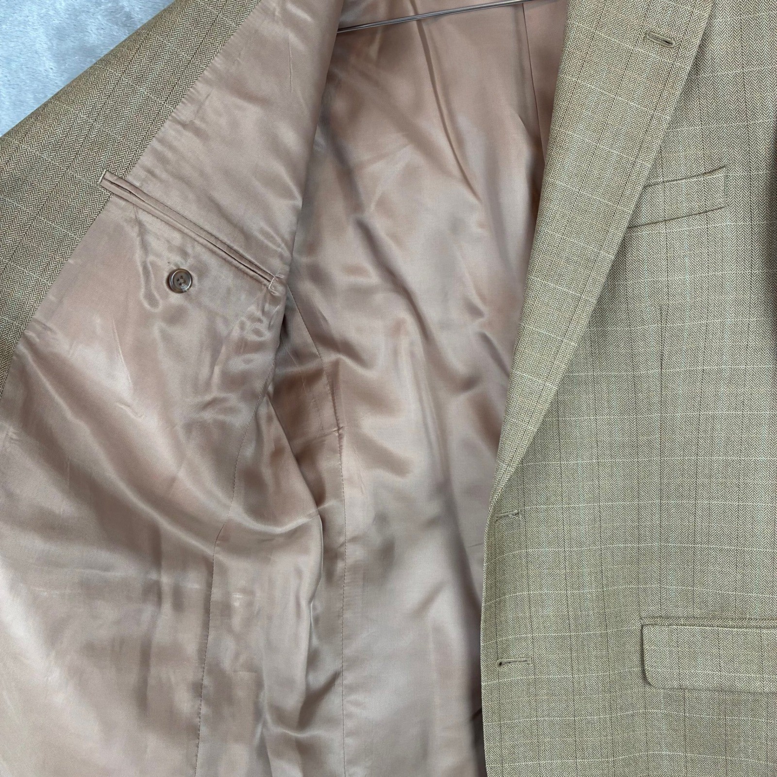 как выглядит Lauren Ralph Lauren Blazer Mens 40 L Wool Silk Tan Windowpane Plaid Academia фото