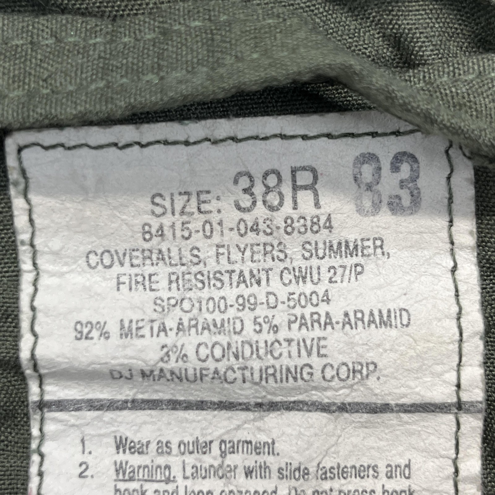 Vintage US Military Flyers Coveralls Mens 38R Green CWU-27/P Flight Suit 90s