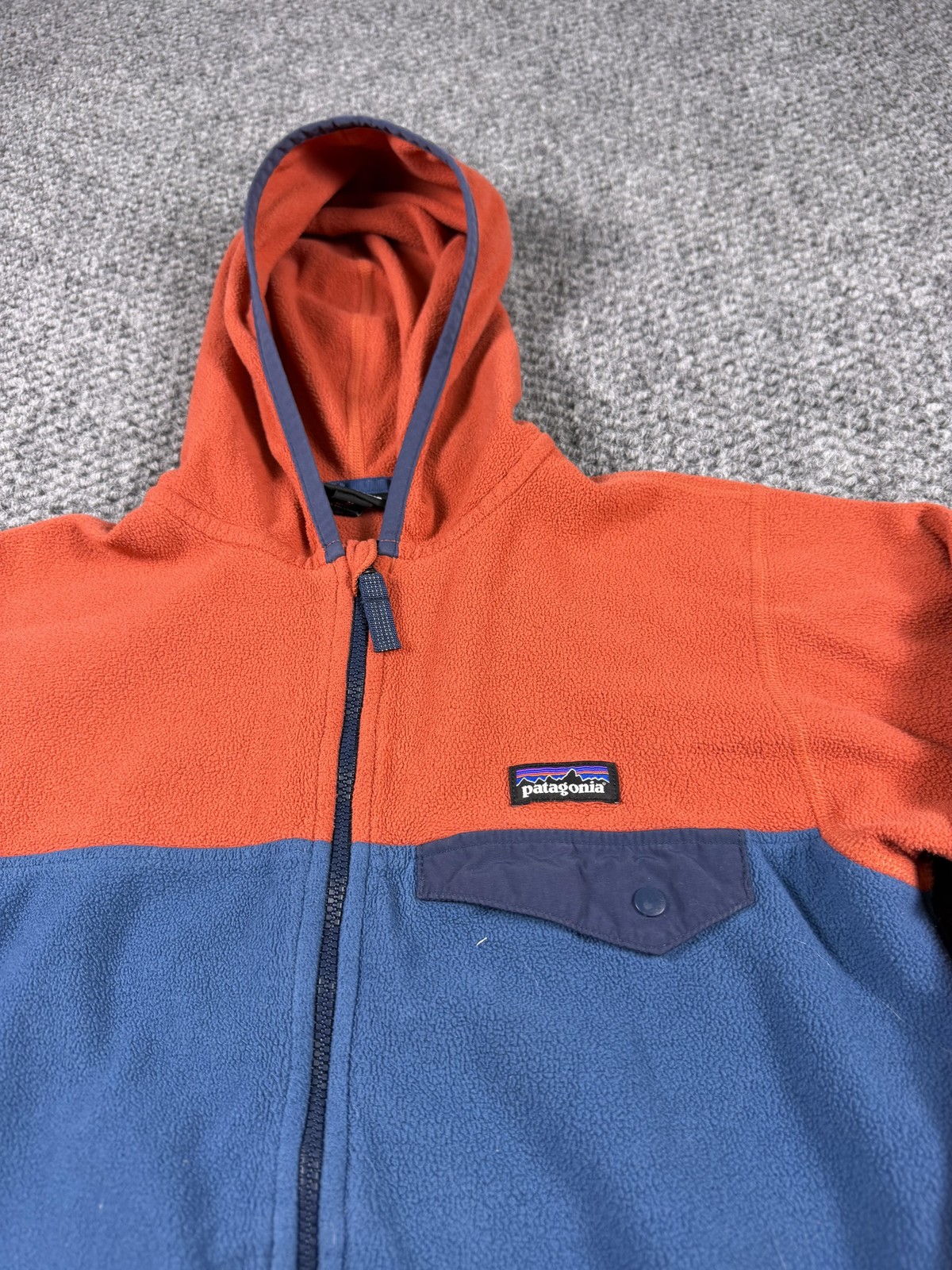 Patagonia Jacket Youth 10 Orange Blue Fleece Full Zip Hooded Colorblock Warm