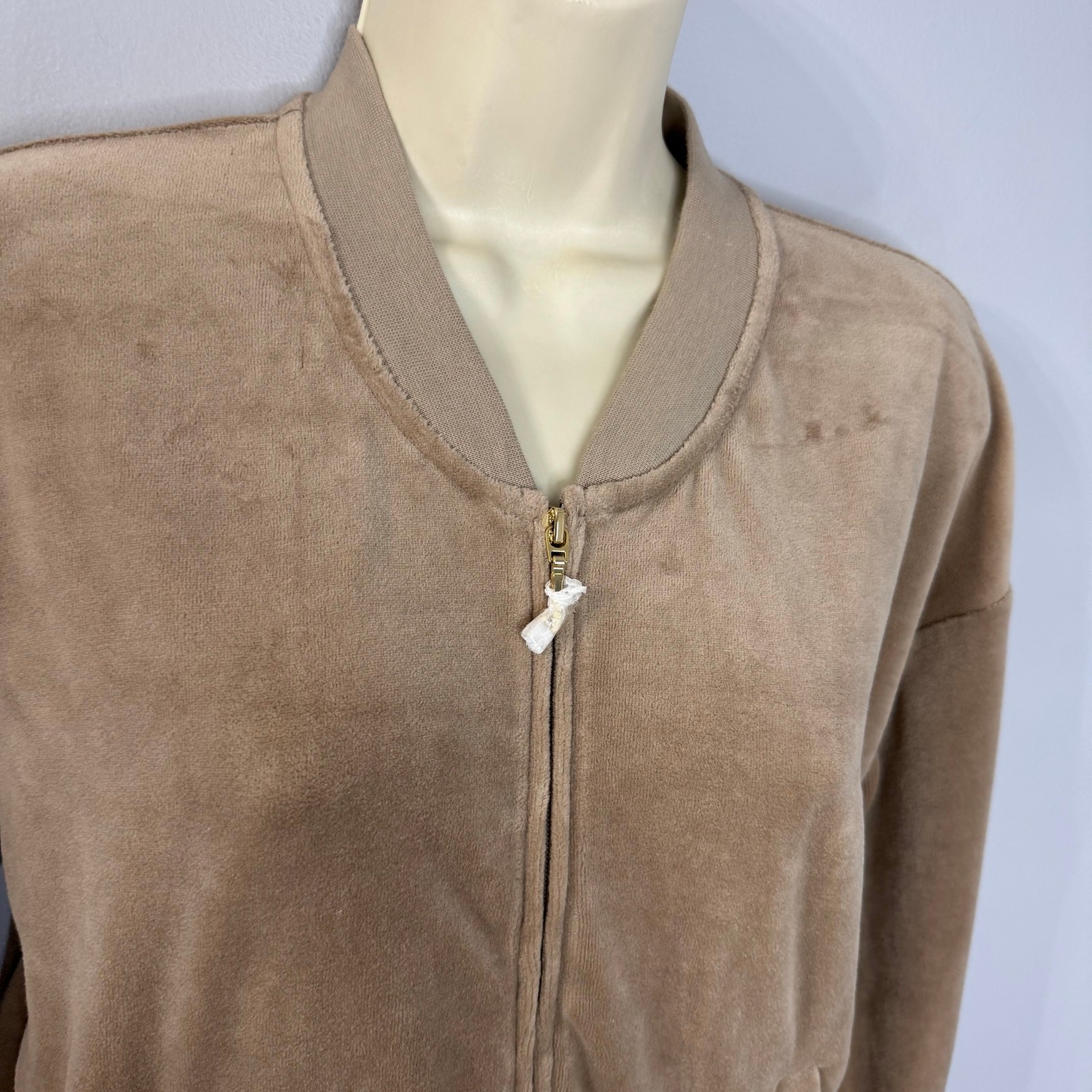 JUICY COUTURE Velour Cropped Track Jacket Y2K Taupe Embroidered Gol Jacket XS