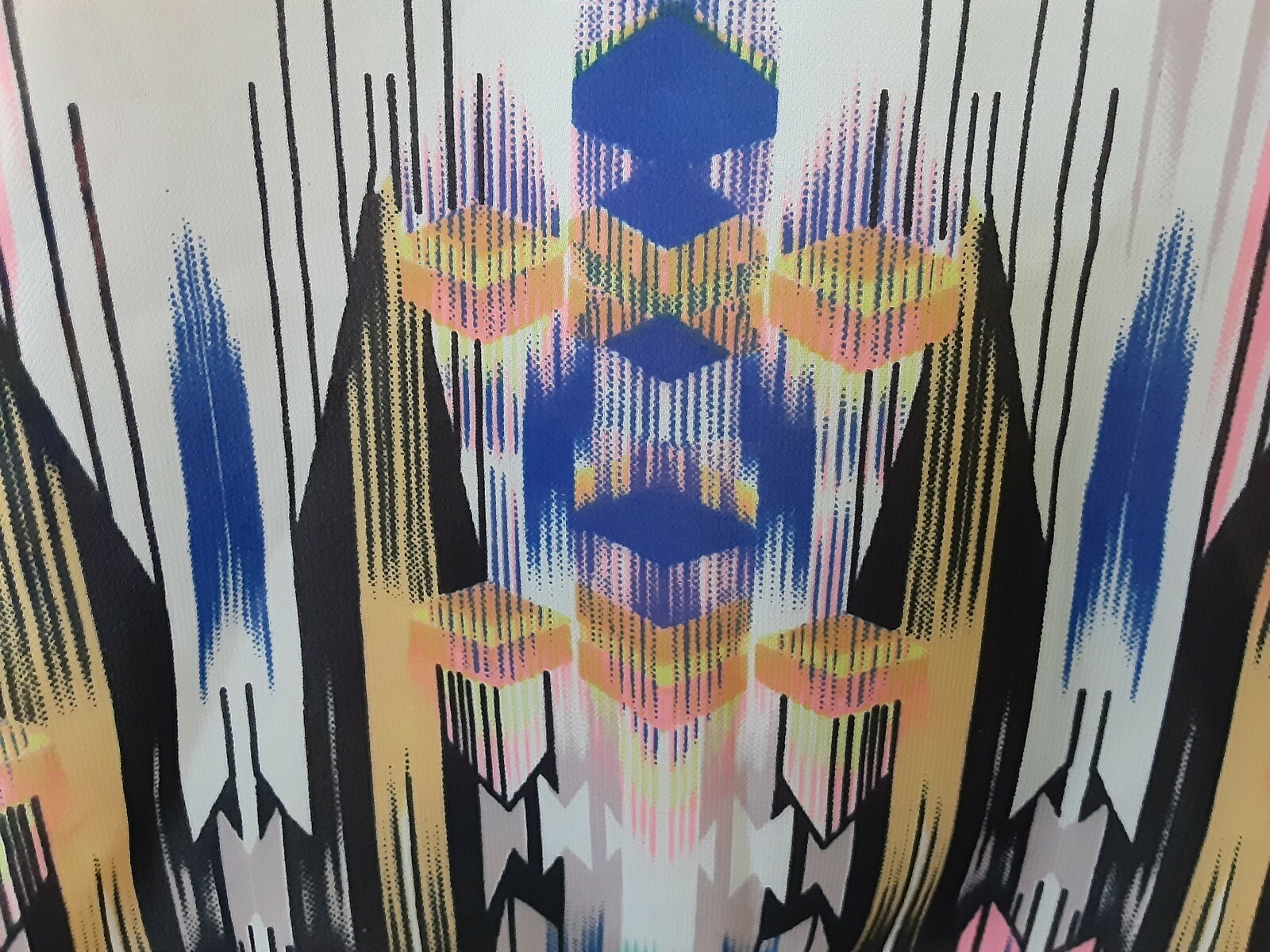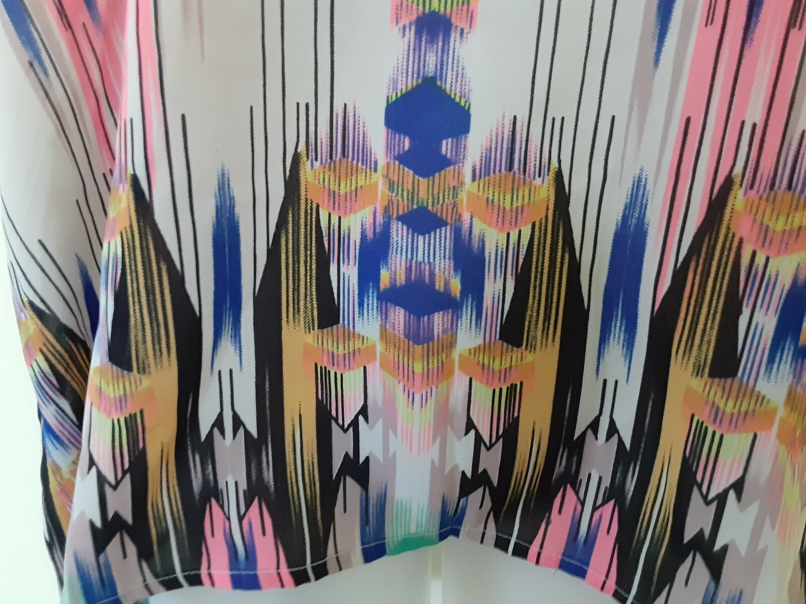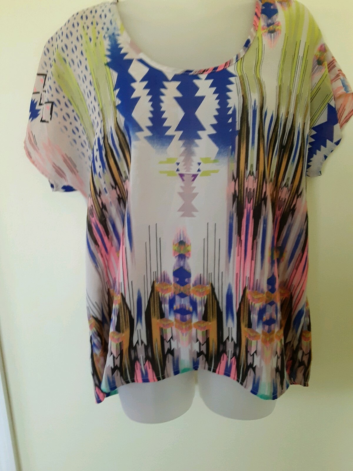 как выглядит Ladies Blouse Vintage Long Vibrant Multi Tribal Geometric Artisan Top SZ L EUC фото