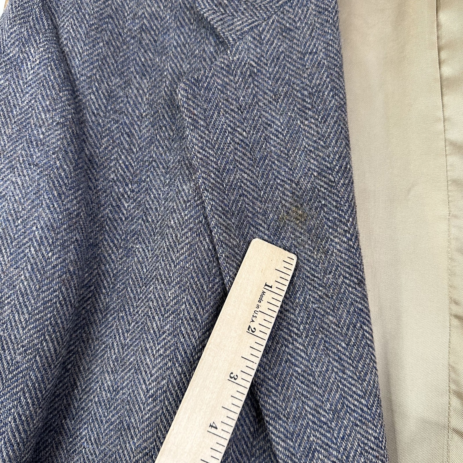 VTG Lands End Blazer Mens 42S Gray Tweed Herringbone 2 Button 100 Wool Jacket