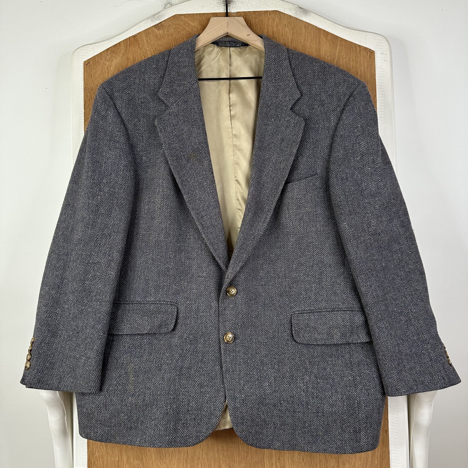 как выглядит VTG Lands End Blazer Mens 42S Gray Tweed Herringbone 2 Button 100 Wool Jacket фото