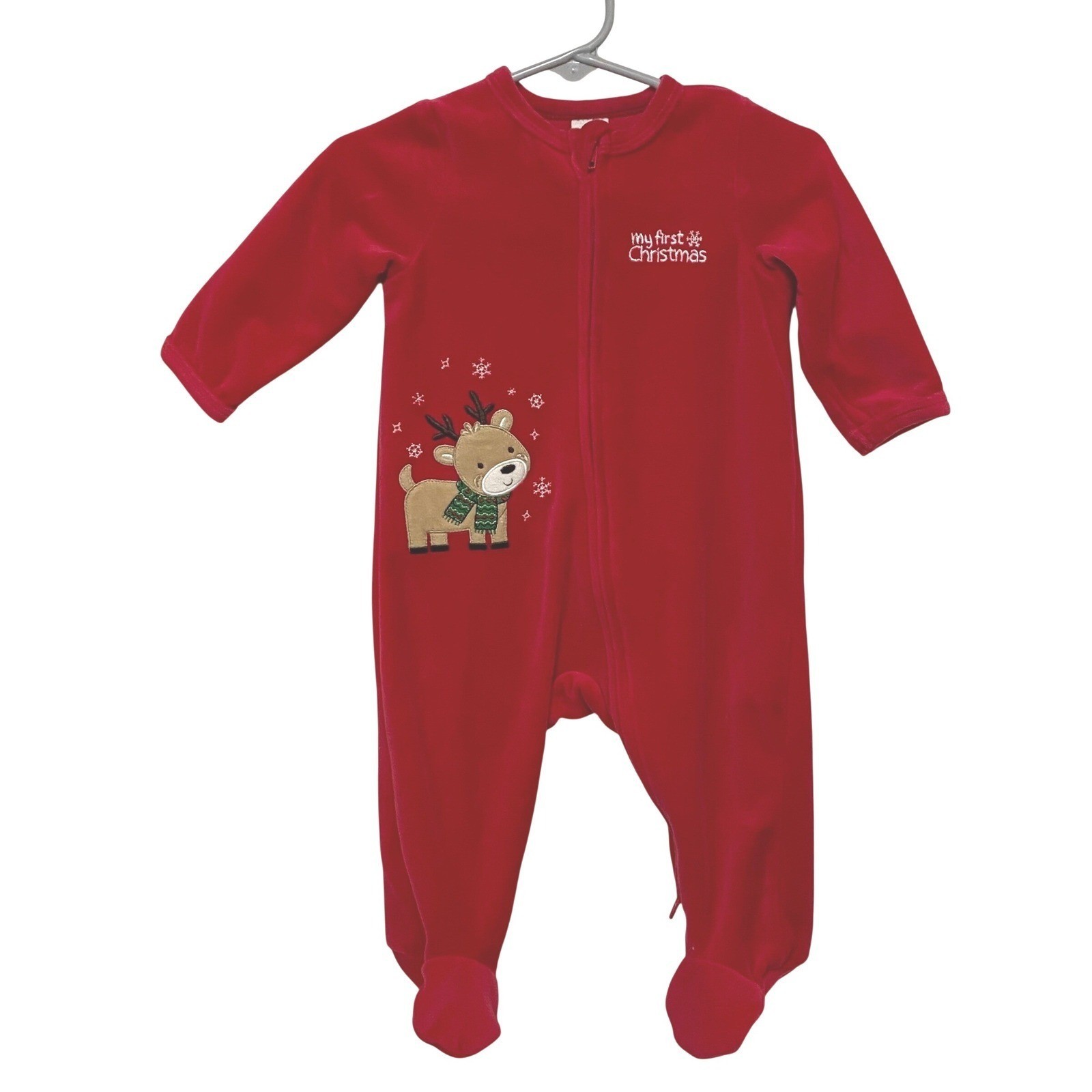 Little Me My First Christmas Sleeper 6 M Red Velour Reindeer Romper Playsuit