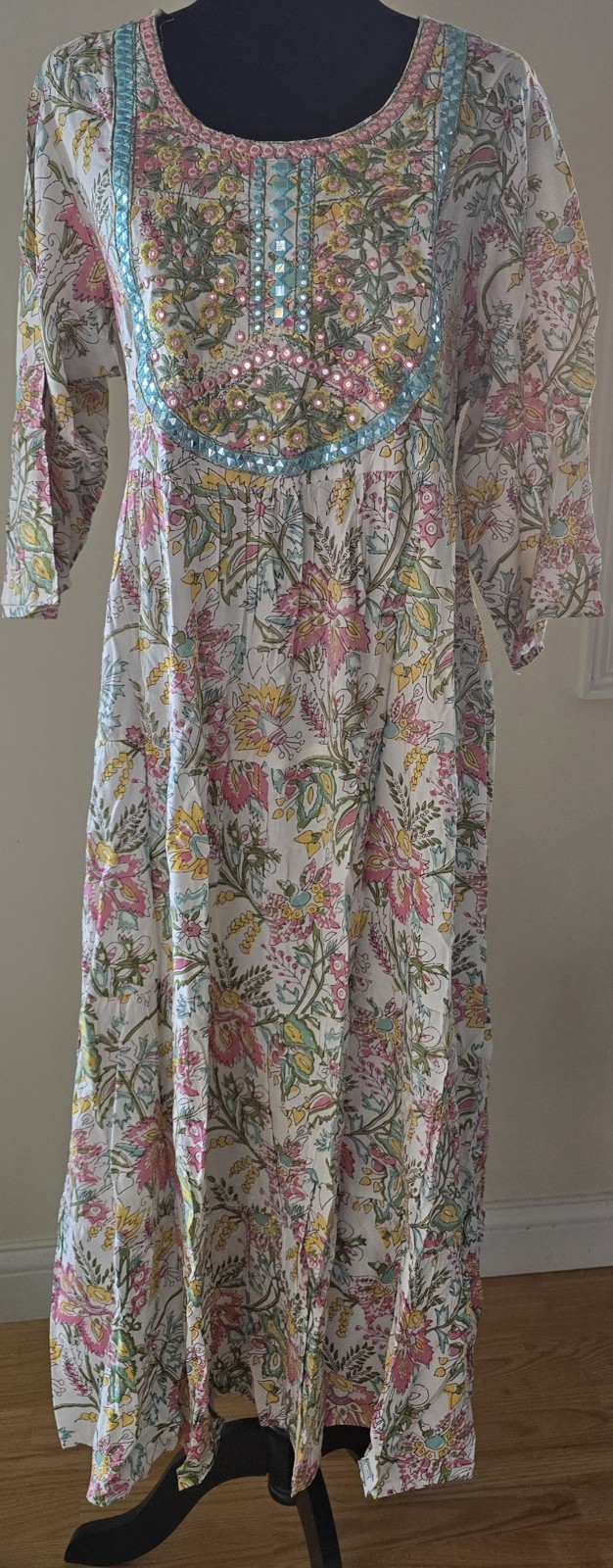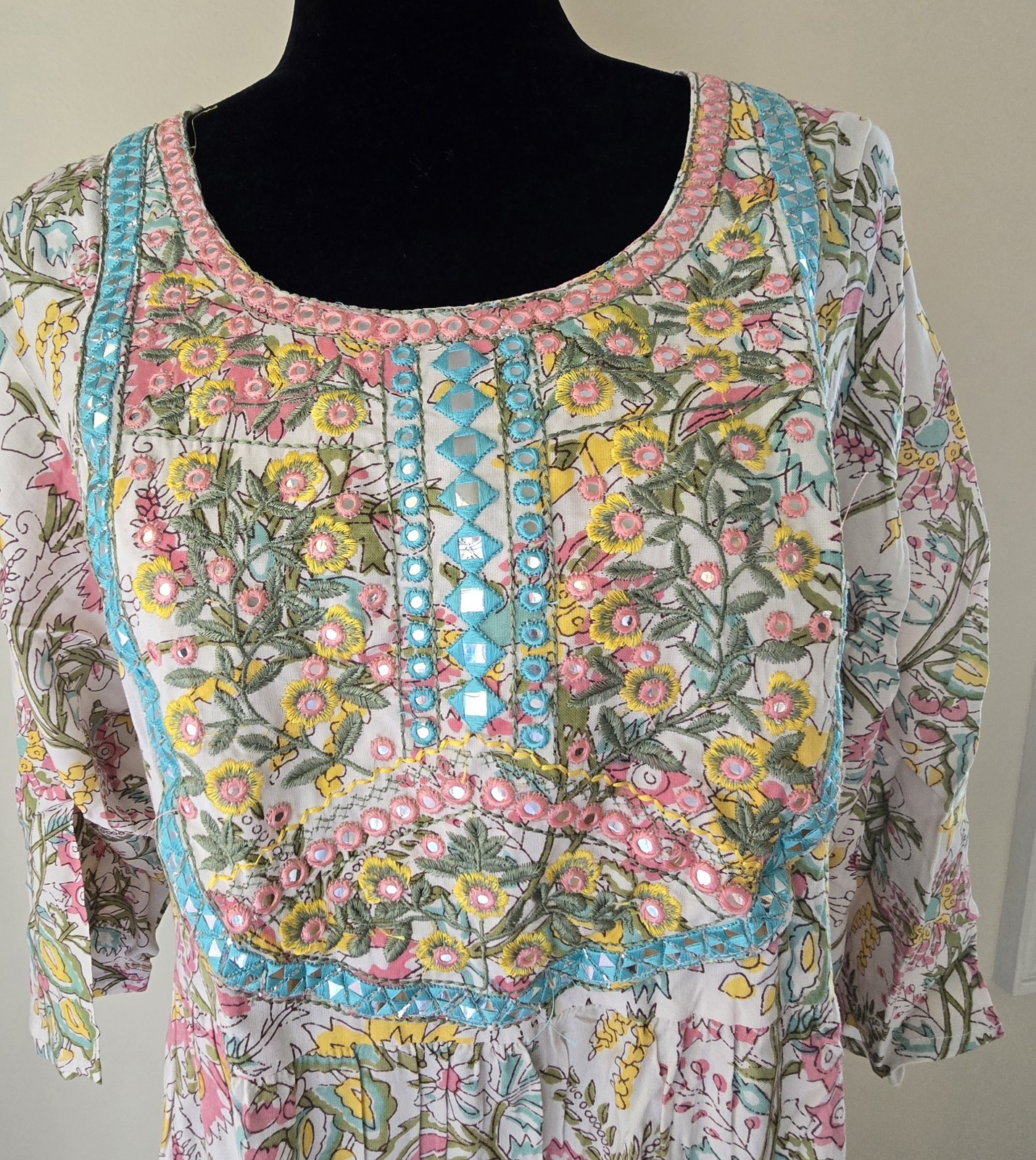 NEW Floral Anarkali Kurta Outfit Women's Plus Size 4XL 48 Mirror Work