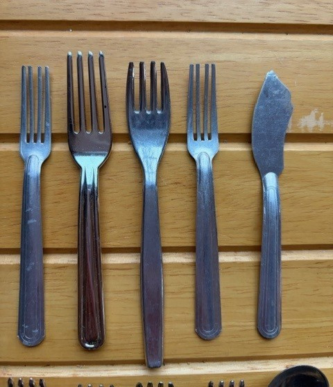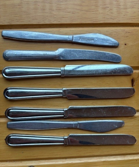 Vintage Children's Toy Silverware Knives Spoons Forks Metal Plastic 22 Pieces