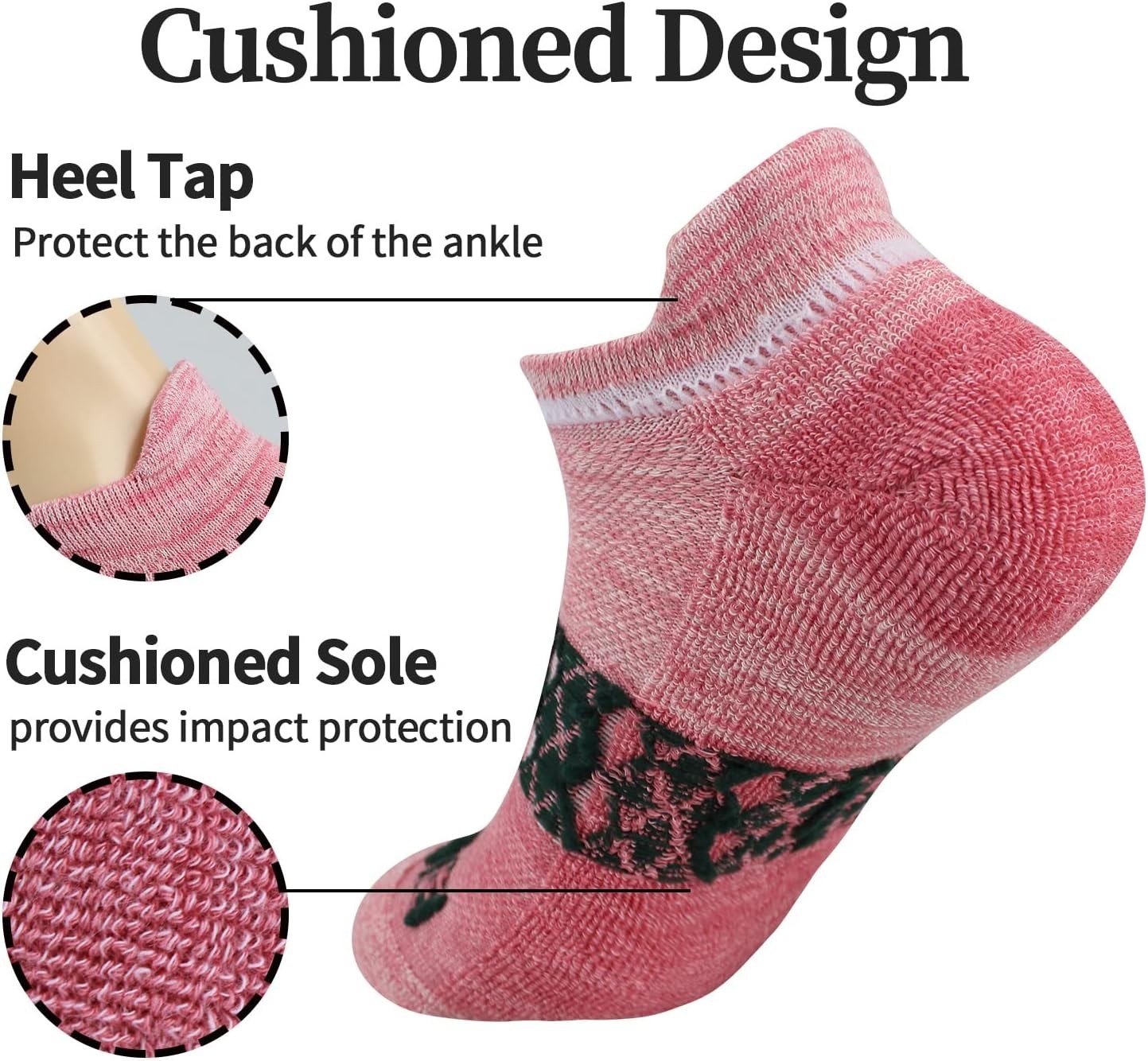 Women's Cotton Ankle Athletic Running Socks - Anti-Blister, 6 Multicolored Pairs