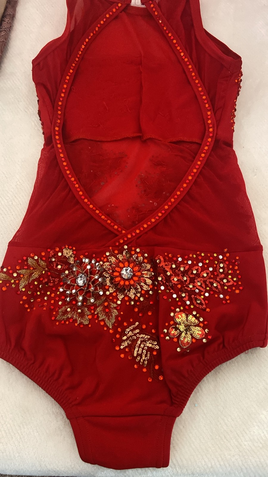 Custom Dance Costume Red Small Adult Details Dancewear 3D Appliques rhinestones