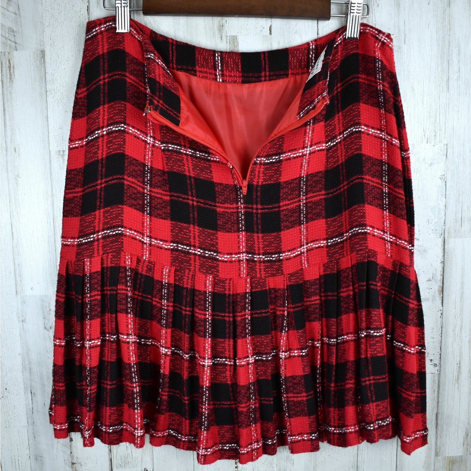 Vintage Plaid Pleated Skirt Black Red Fits 10/31 Alt Grunge Punk Academia Preppy