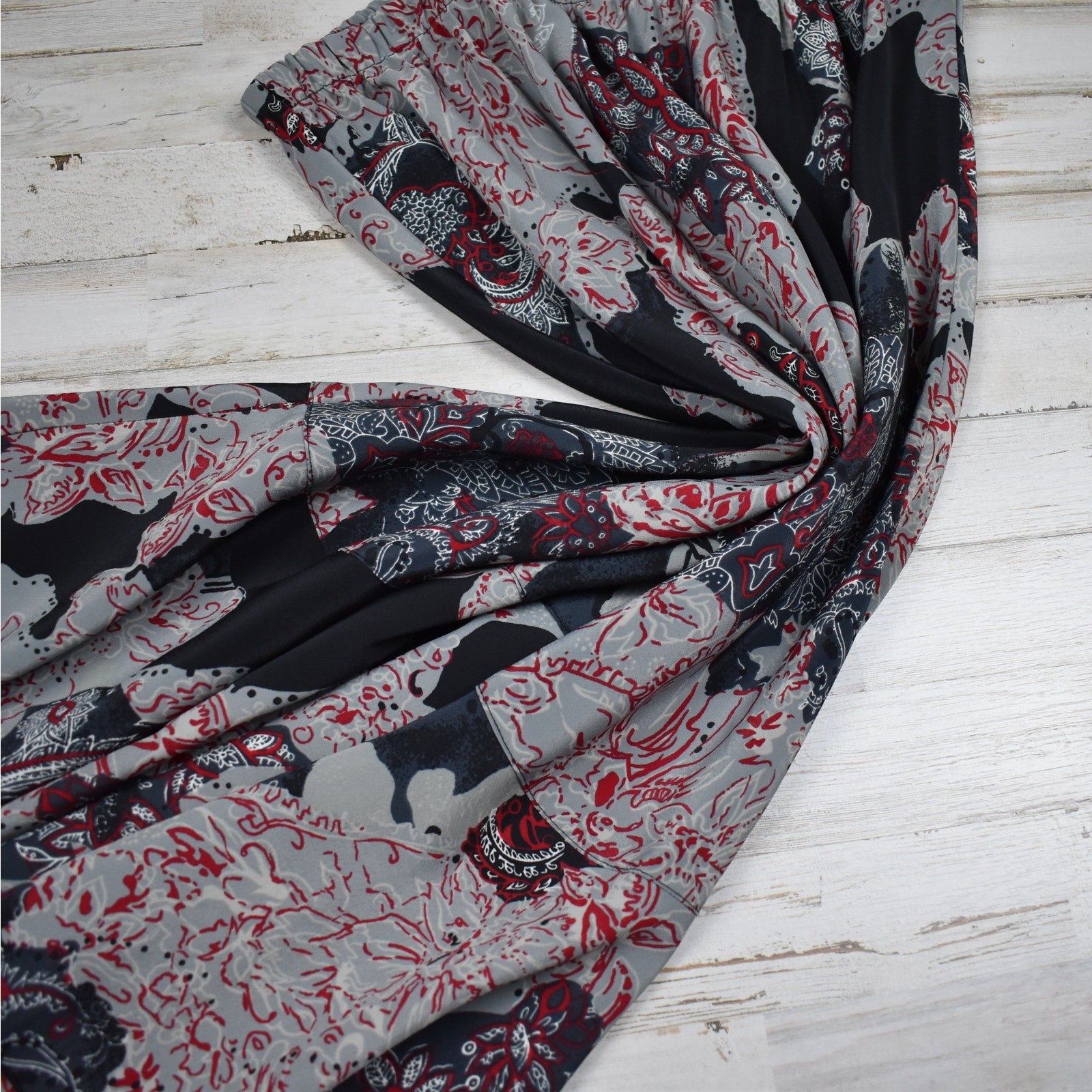 как выглядит Vintage Midi Skirt Fits XL 1X Floral Paisley Gray Black Whimsigoth Grunge Boho фото