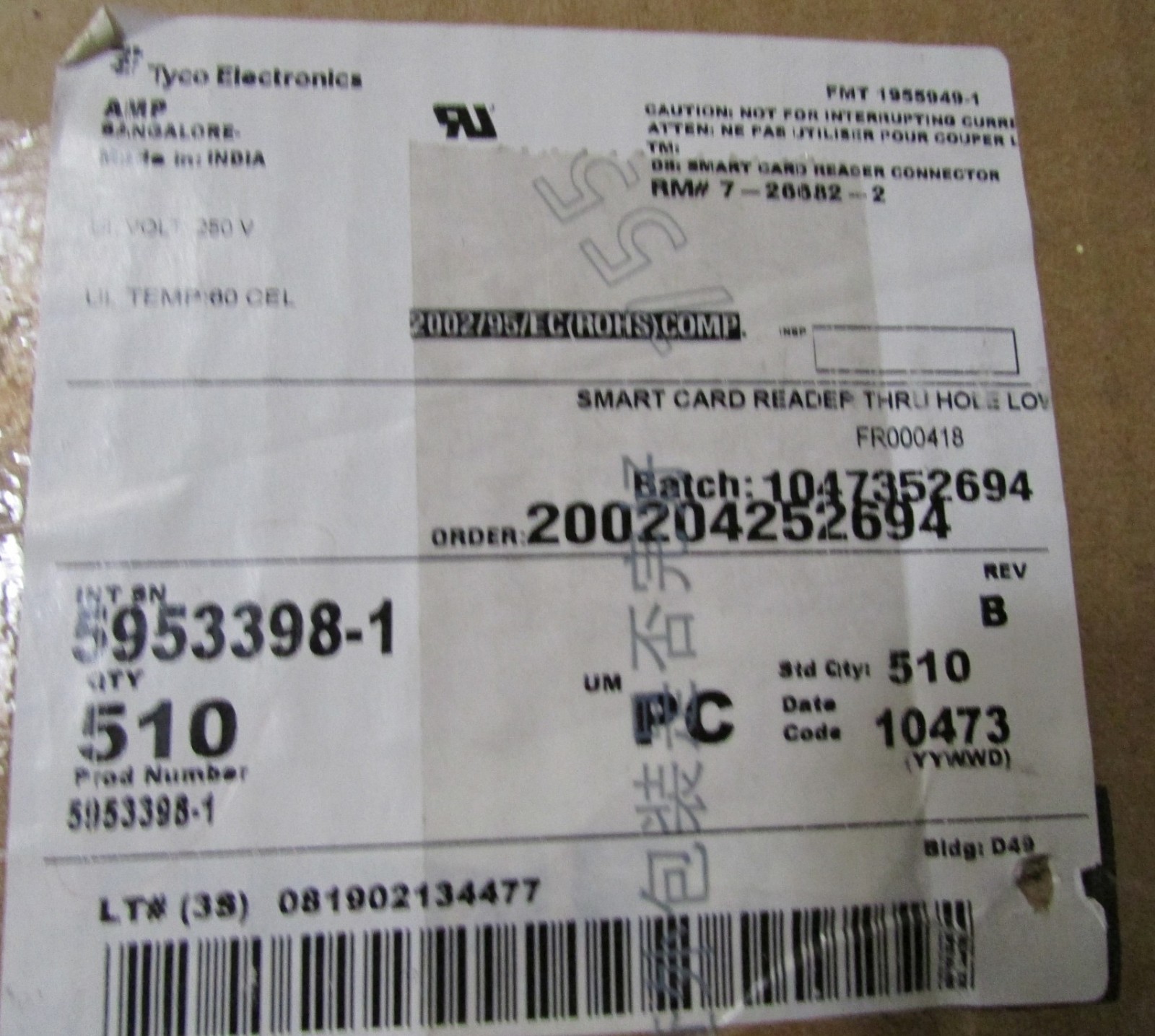 2 New Tyco Amp PCB Smart Card Reader PC Sockets 10 Position 8 2 Gold Contacts