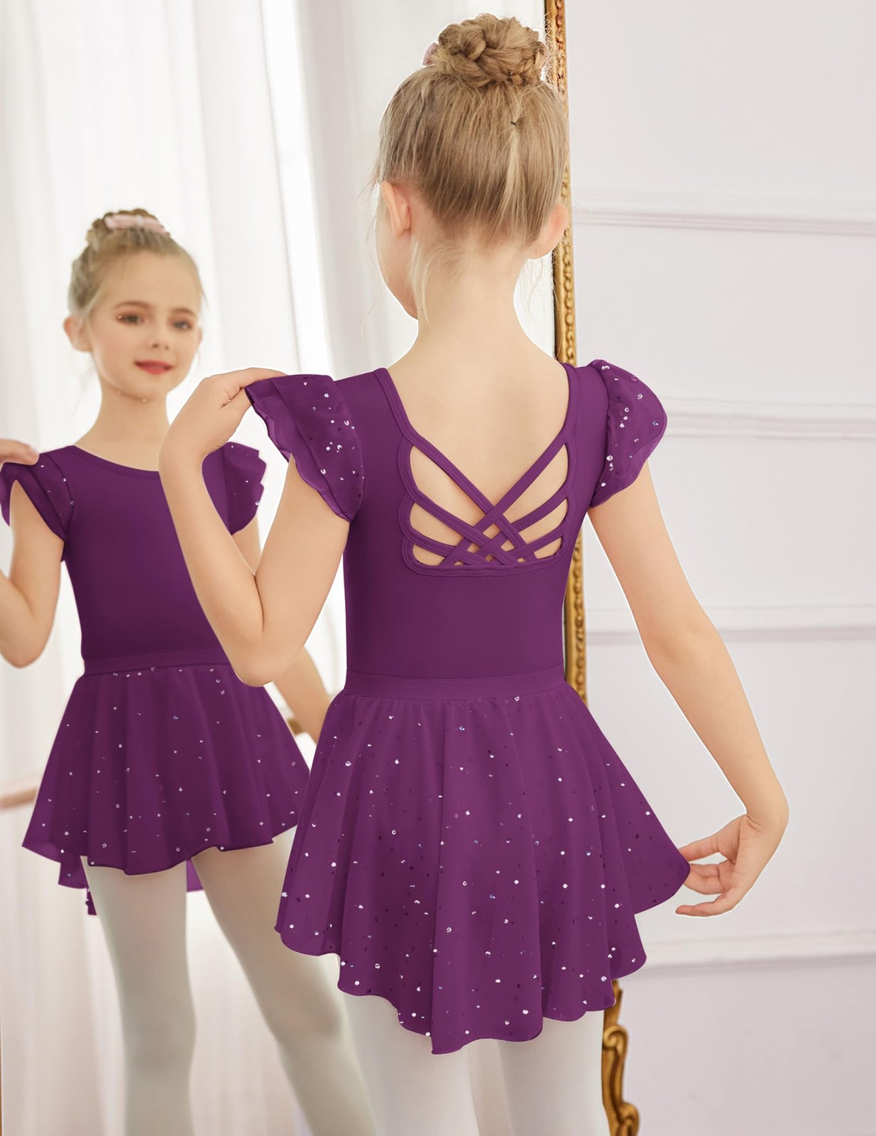 Ballet Leotards for Girls Toddler Ruffle Sleeve Crisscross Back Dance Dress O...