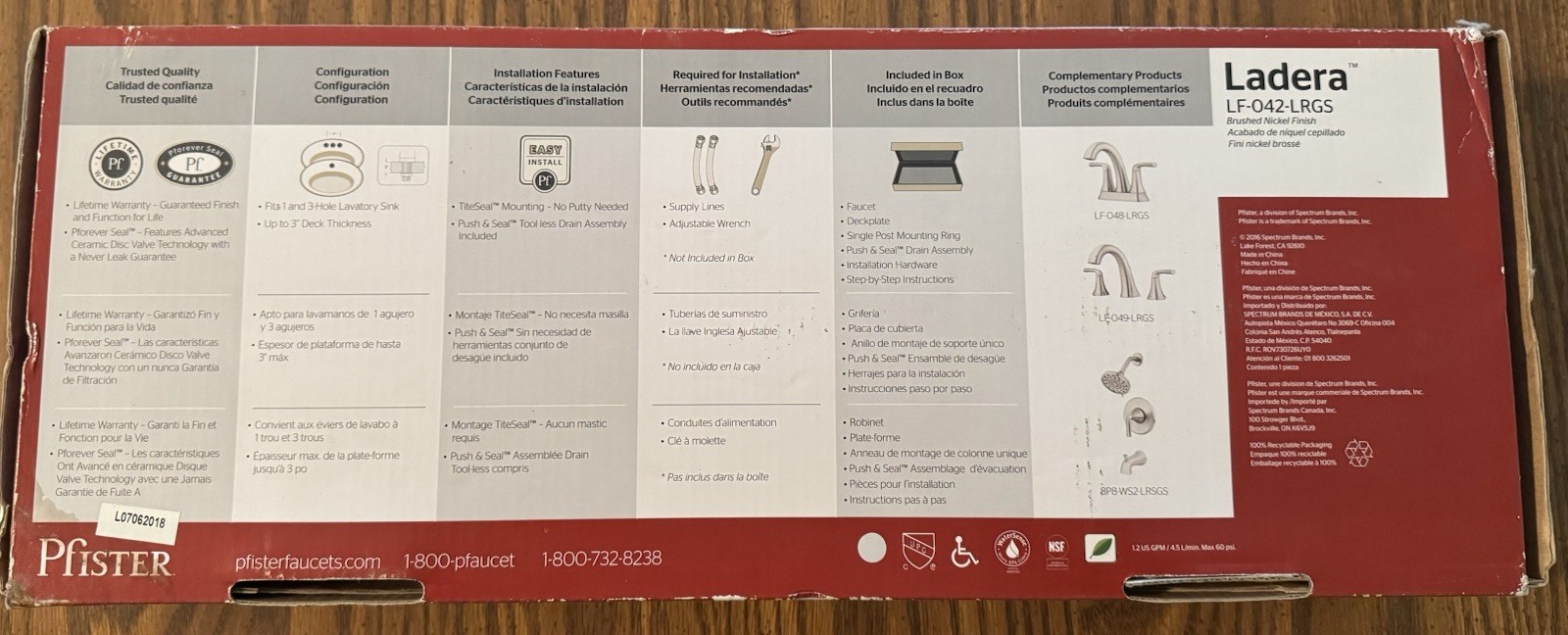 Pfister Ladera LF-042-LRGS Single Handle Bathroom Faucet Brushed Nickel NEW