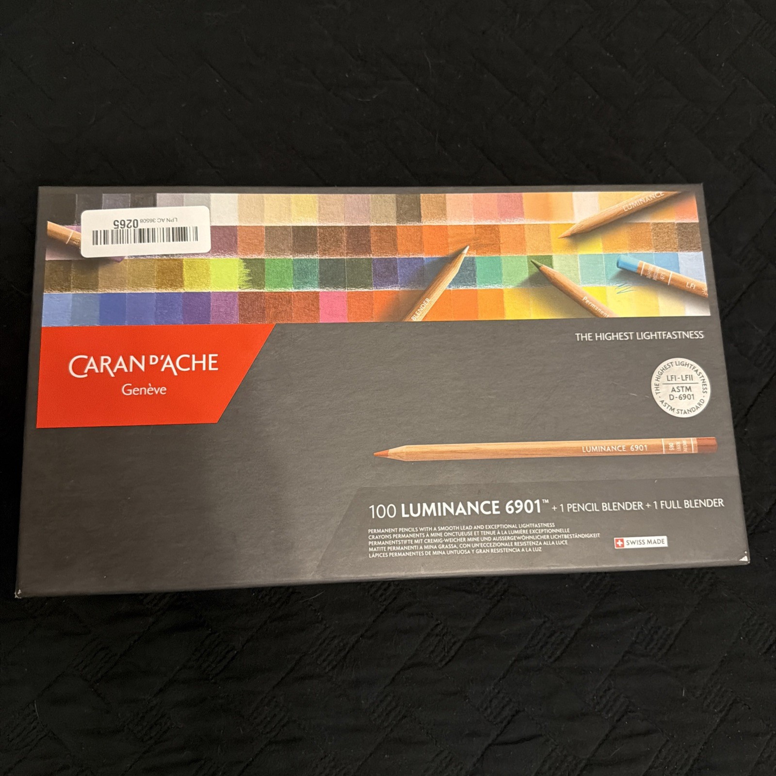 New Unused Caran d Ache Luminance 6901 100 Pencil Set 2 Blenders Swiss Made