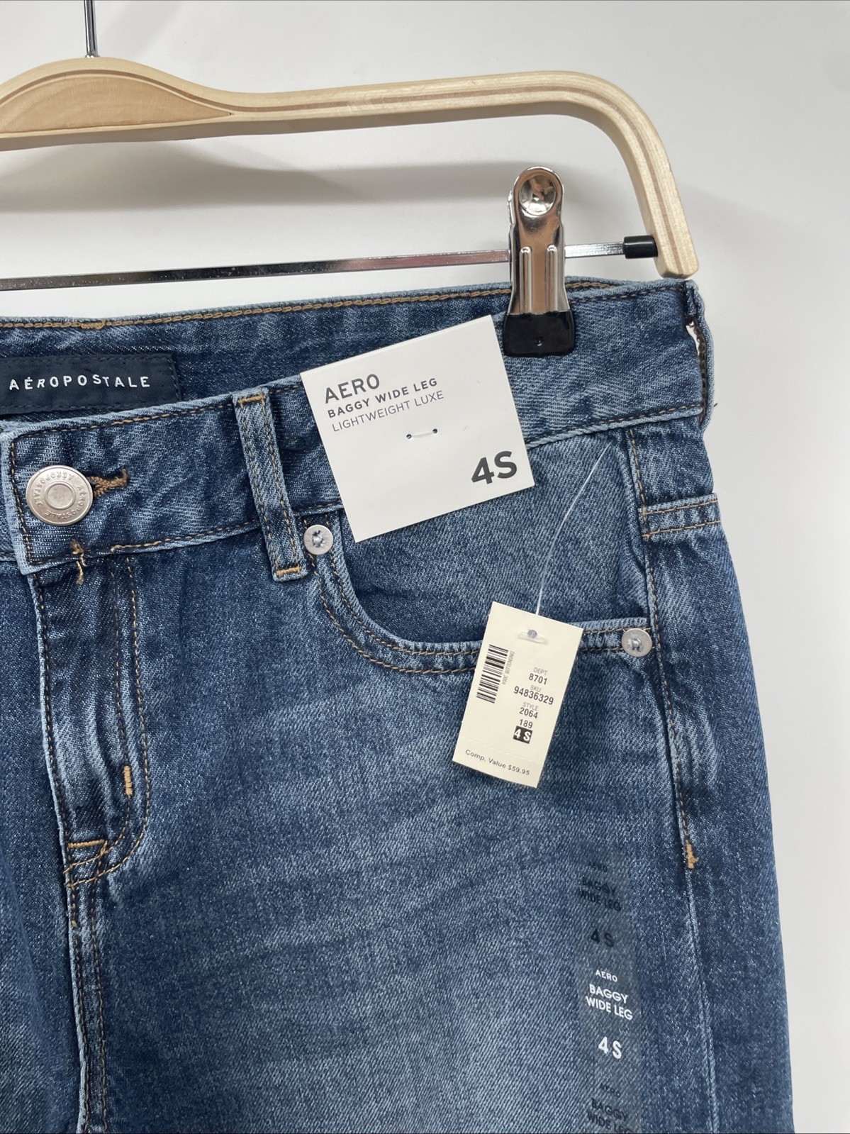 Aeropostale Jeans Womens 4 Short Blue Denim Aero Baggy Wide Leg Lightweight NWT