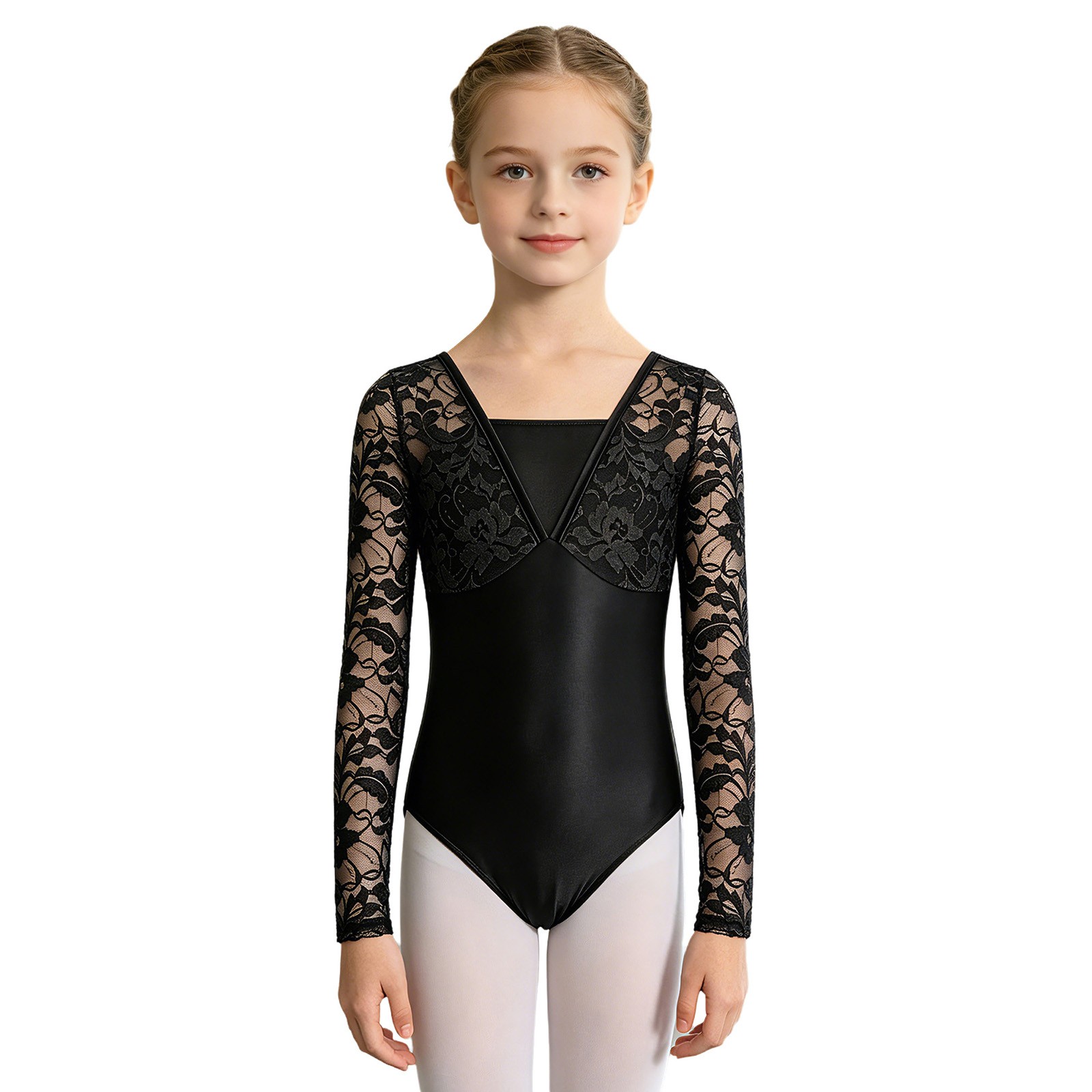 Kids Girls Bodysuit Glitter Dancewear Sparkly Leotard Press Button Patchwork
