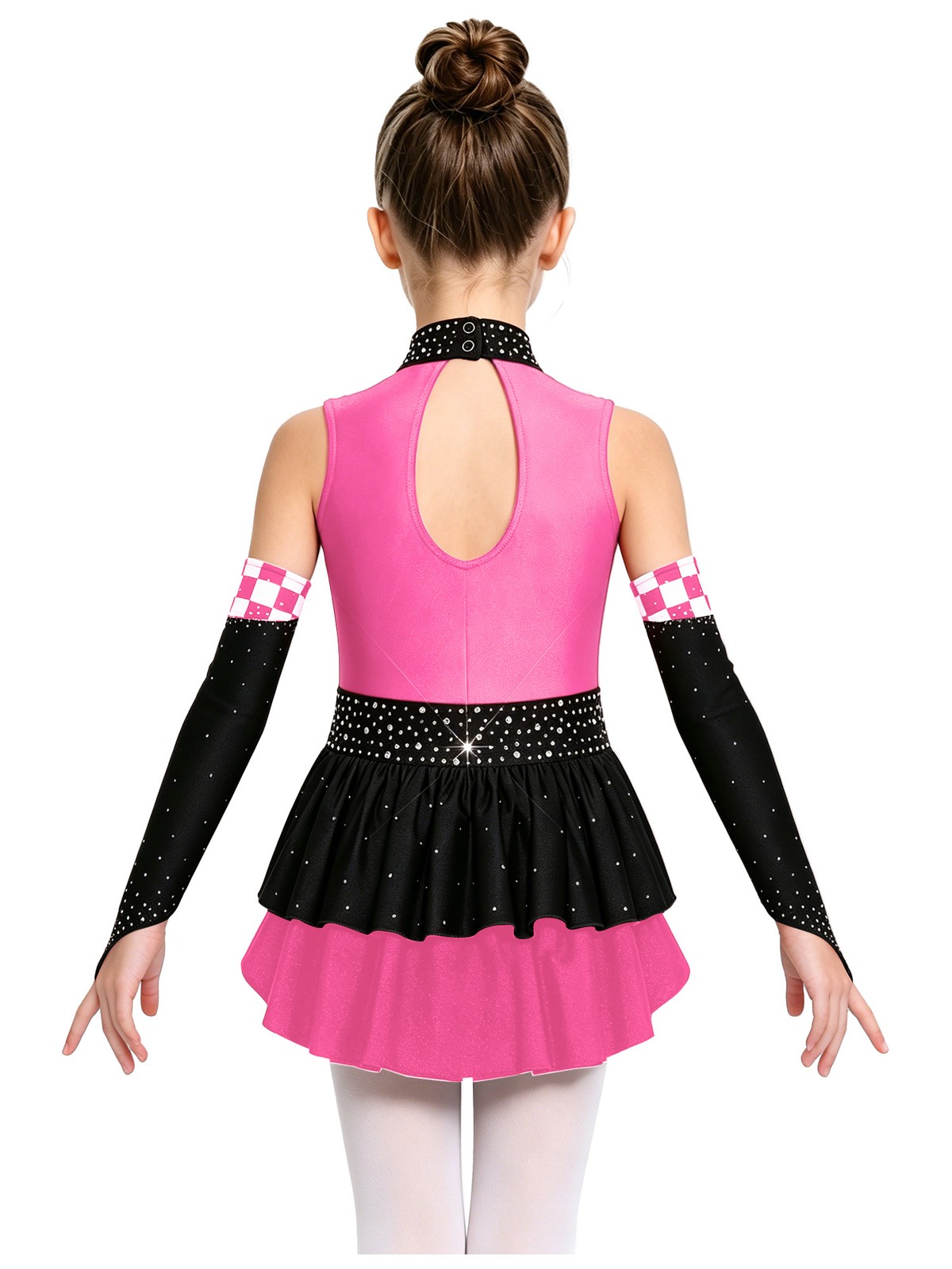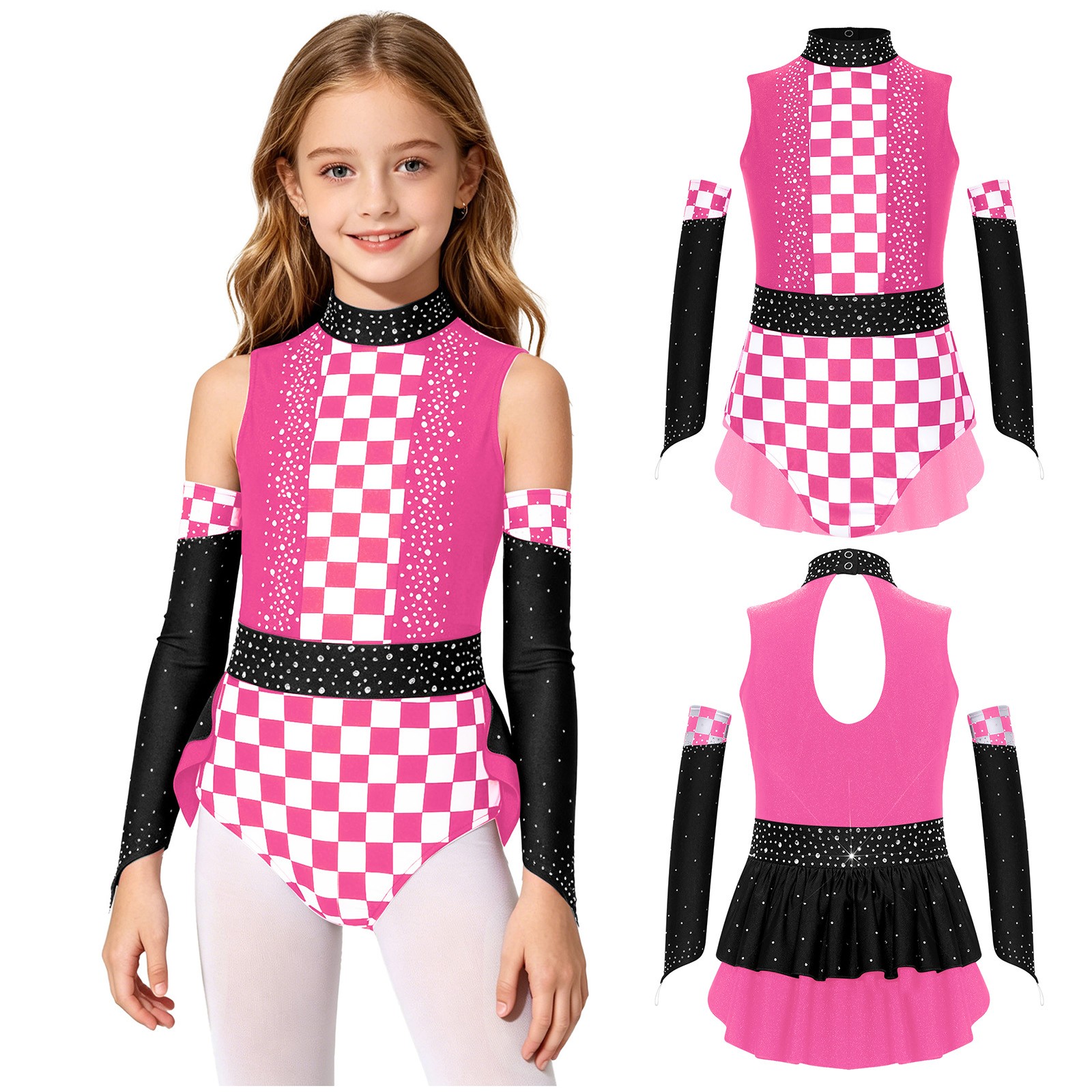 как выглядит Girls Dance Costume Overlay Bodysuit Ruffle Leotard Stage Performance Uniform фото