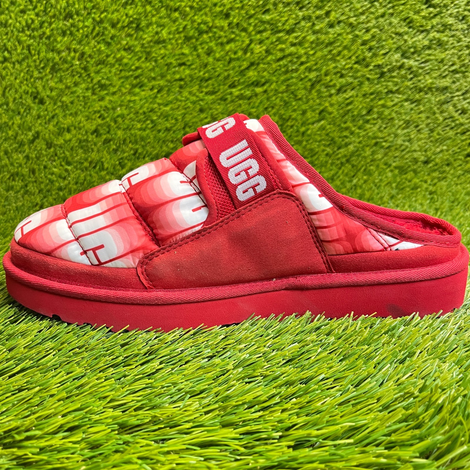 UGG Scuff Graphic Band Mens Size 9 Red Casual Classic Slip On Slippers Shoes