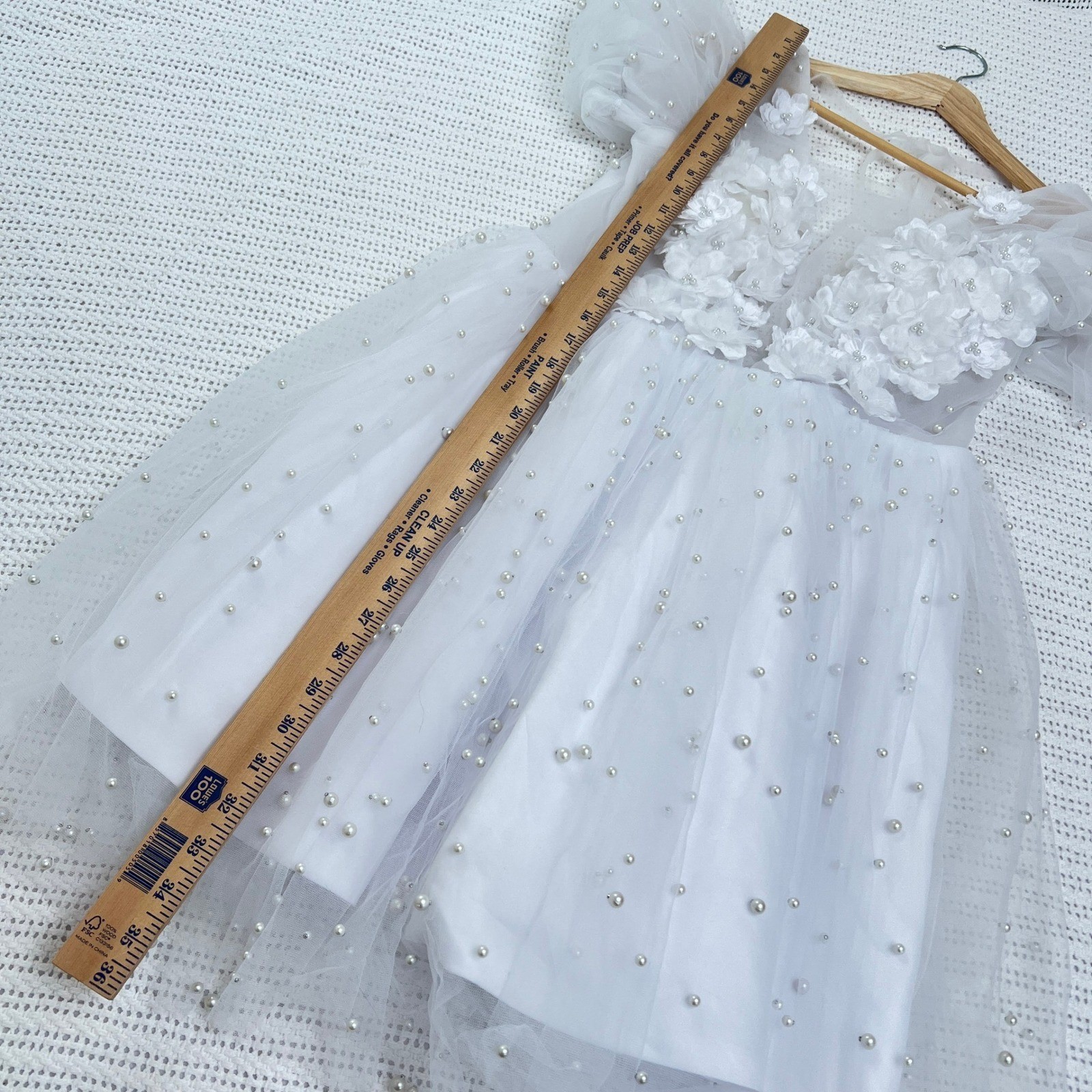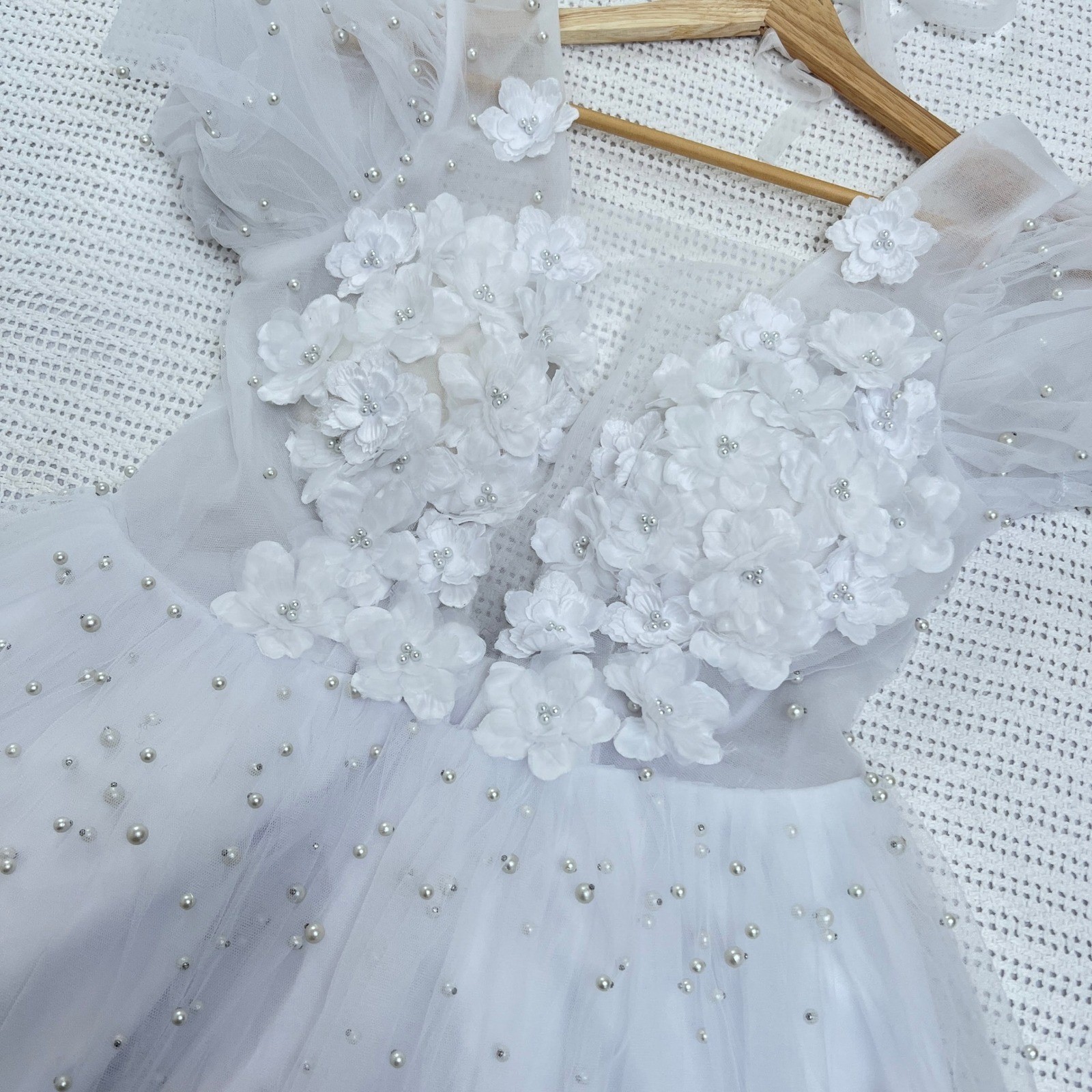 как выглядит Elegant White Tulle Pearl Flower Girl Dress Pageant Formal Party Birthday 10 фото