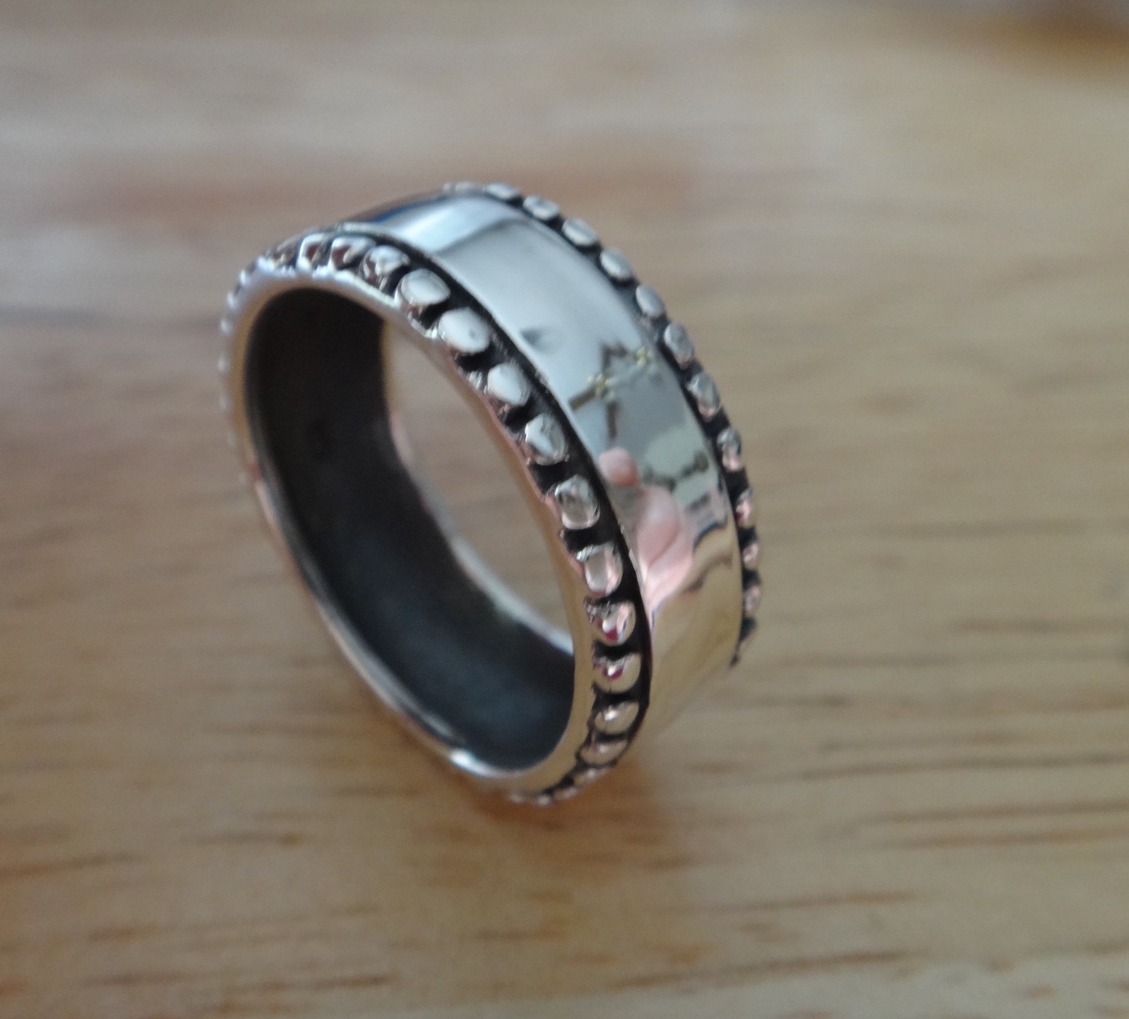 size 8 Sterling Silver 7 mm wide Band Dots Edge Ring