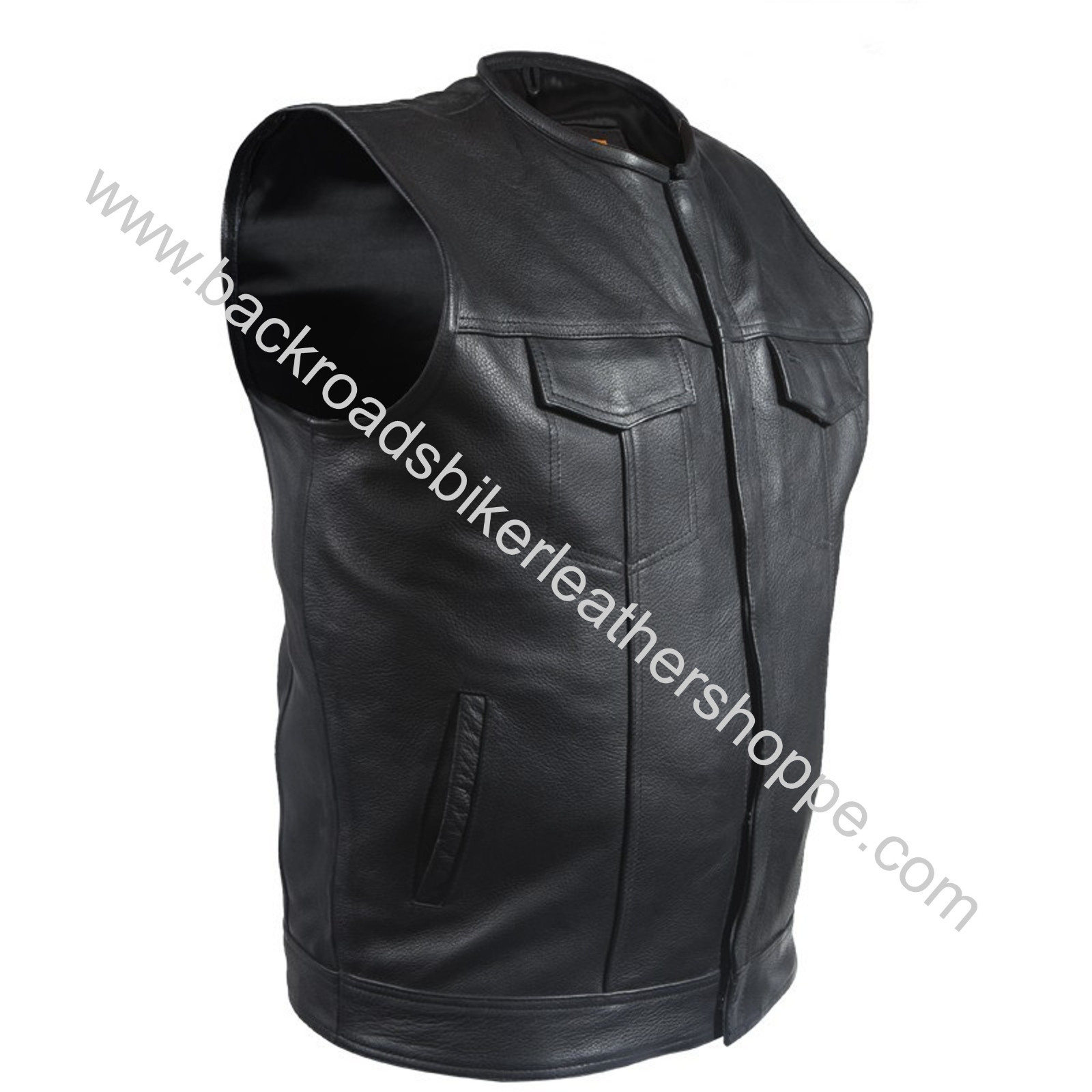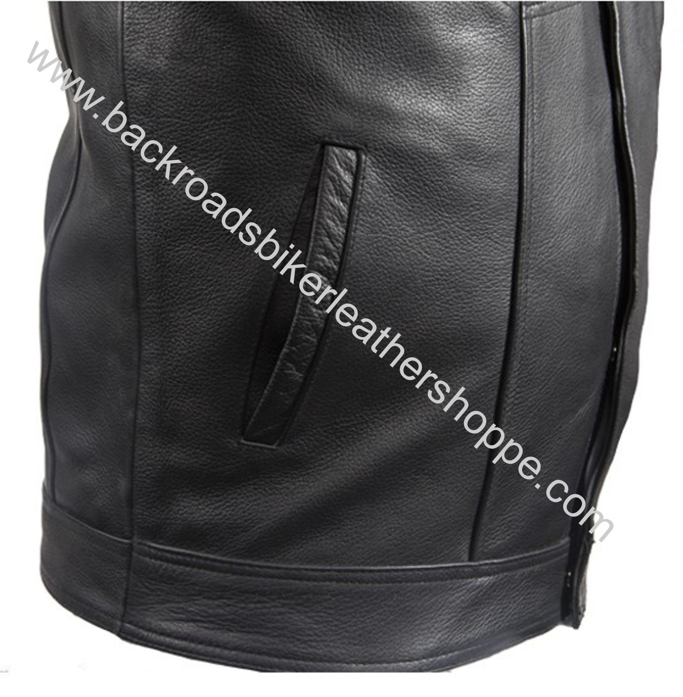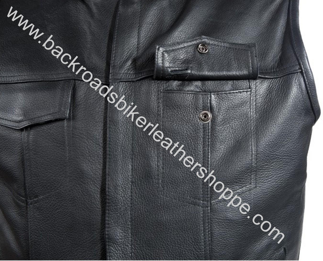 Leather Motorcycle Biker Club Outlaw Vest Conceal Carry Pocket Solid Piece Back