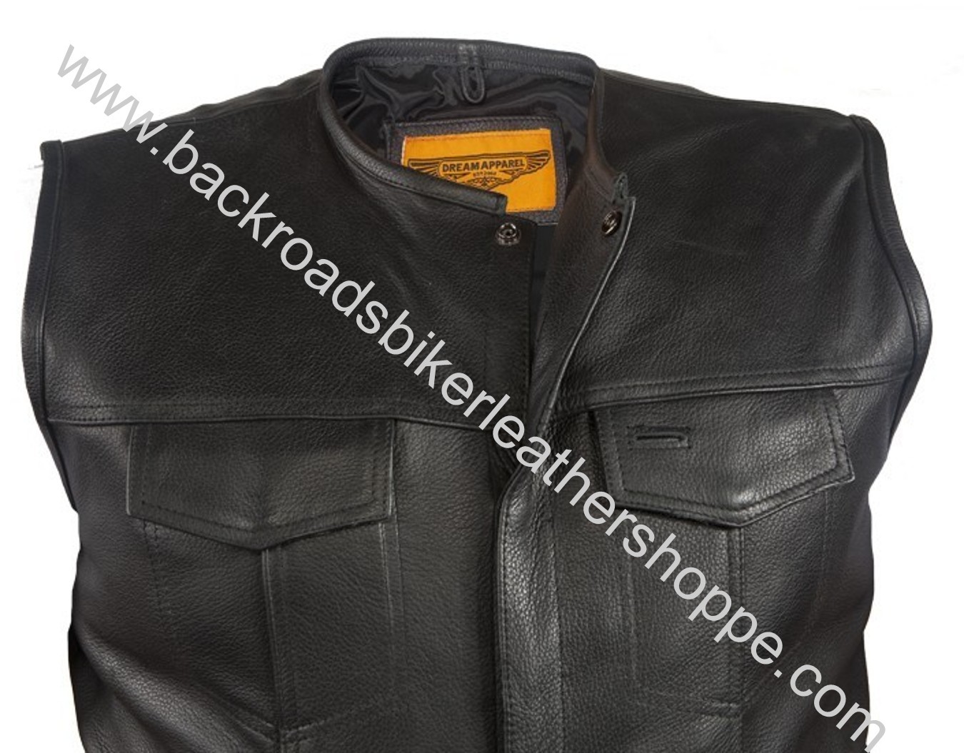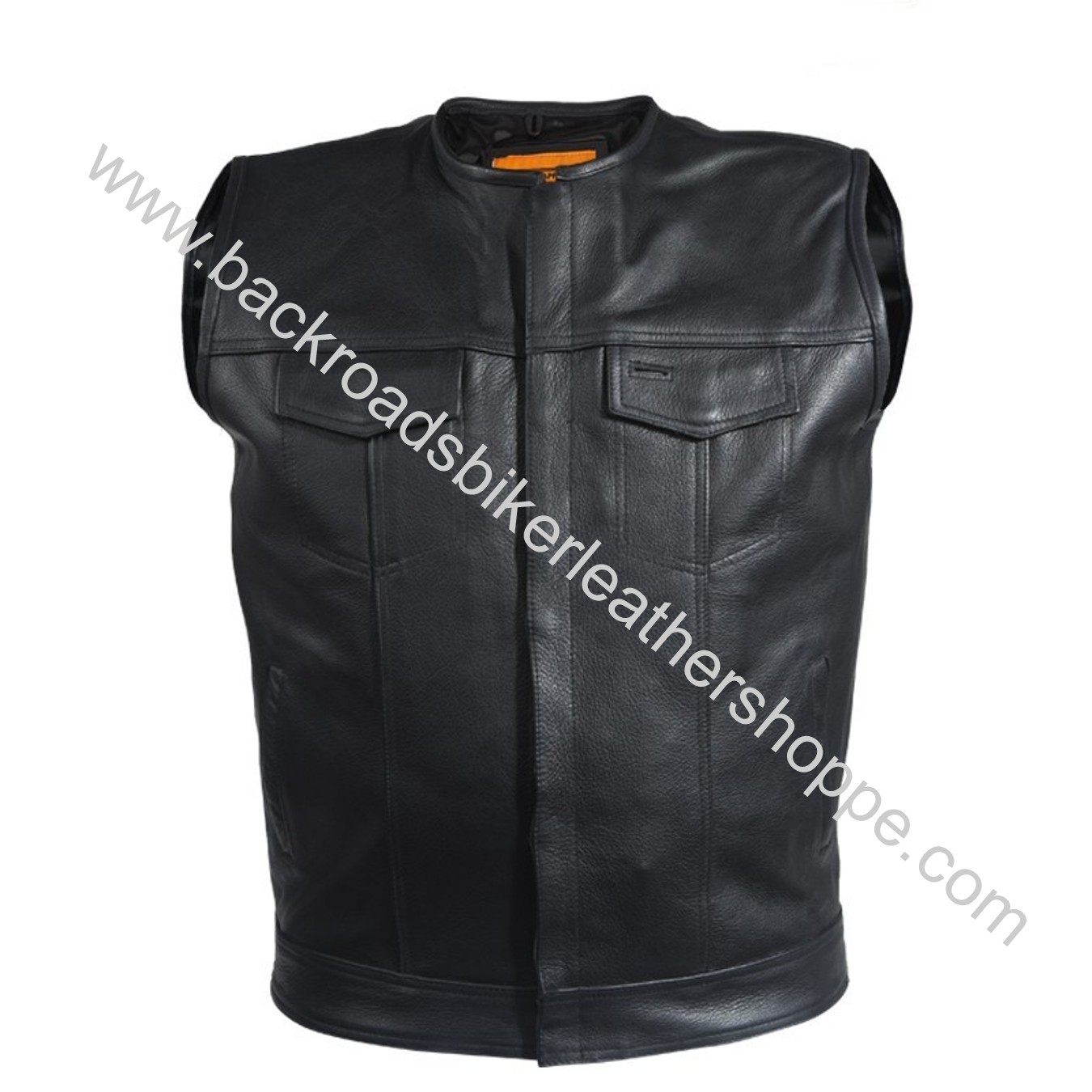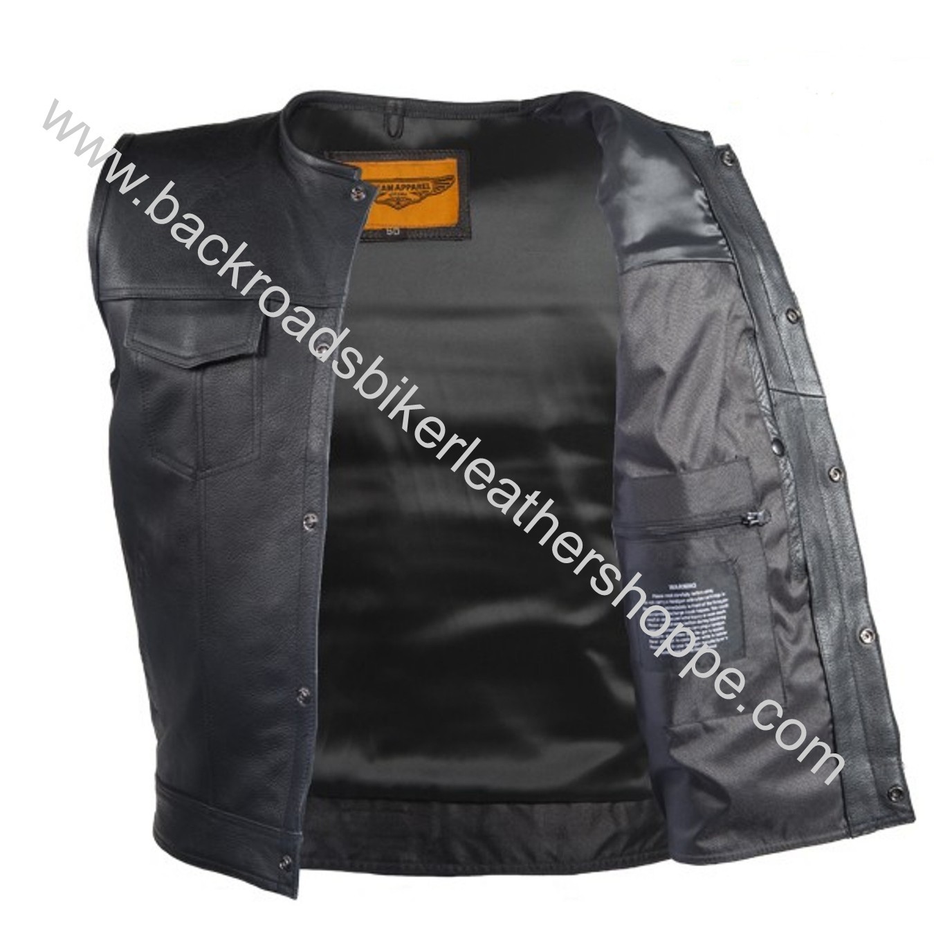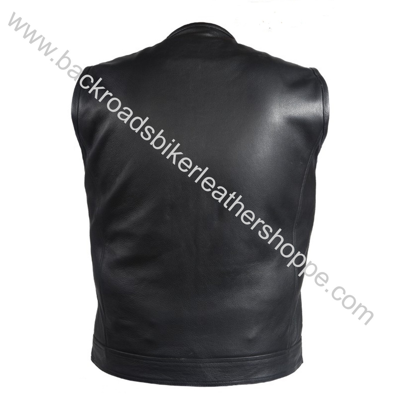 Leather Motorcycle Biker Club Outlaw Vest Conceal Carry Pocket Solid Piece Back