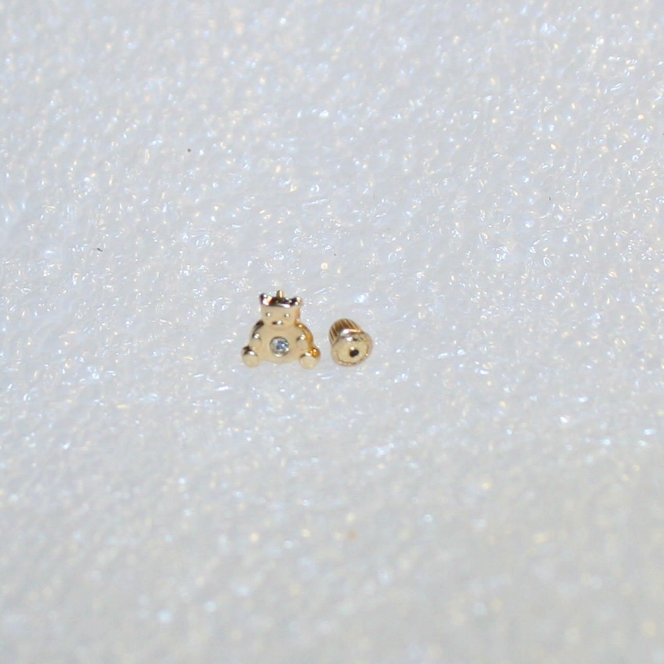 как выглядит Austrian Zircon Teddy Bear Stud Screw Back Earrings Solid 14k Yellow Gold фото