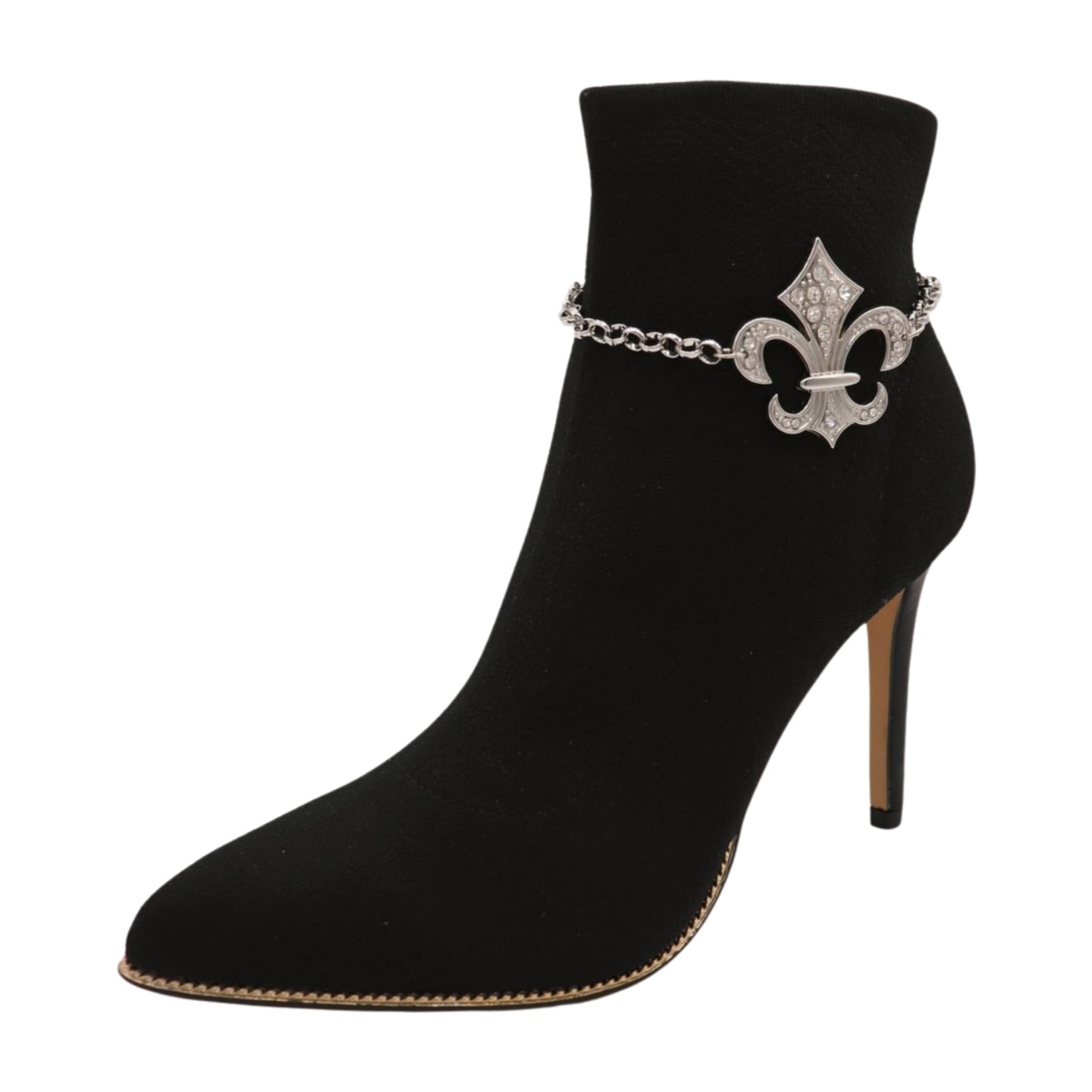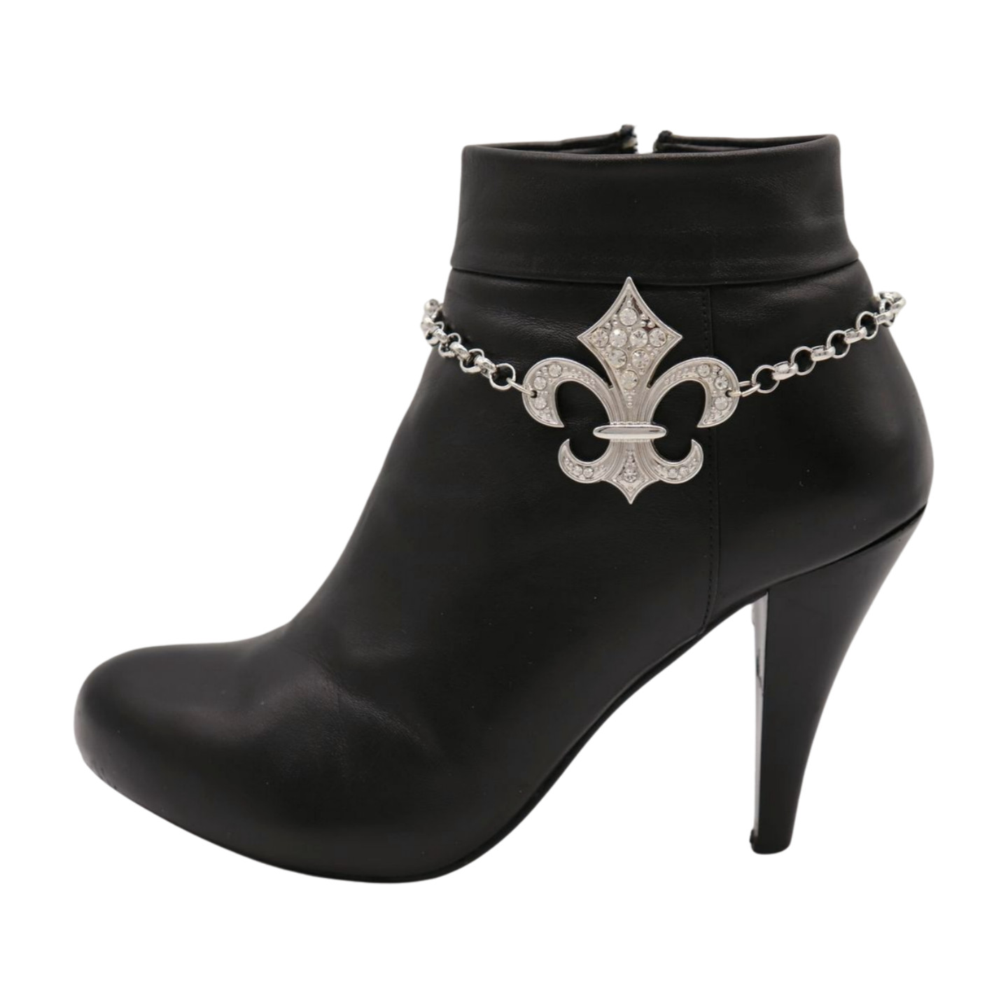Women Silver Metal 2PCS Boot Chain Bracelet Shoe Fleur De Lis Lily Charm Biker
