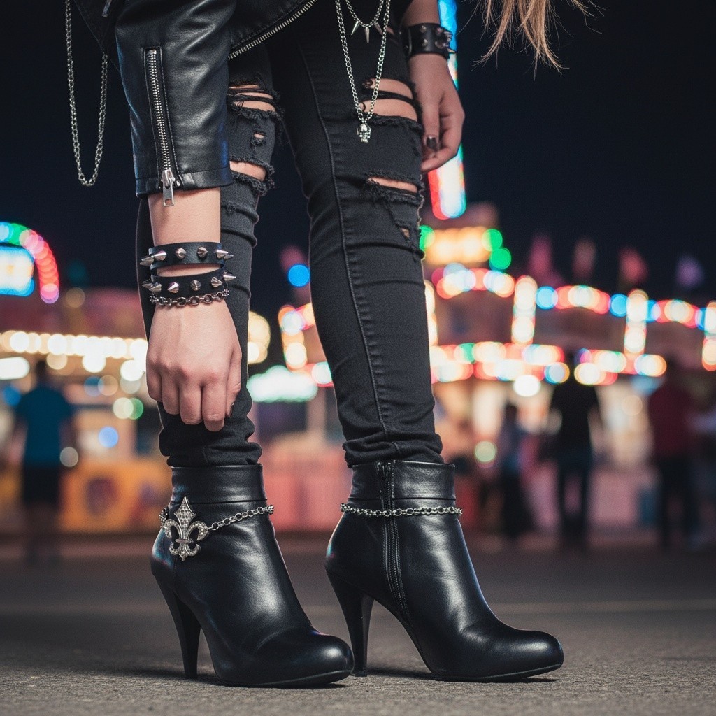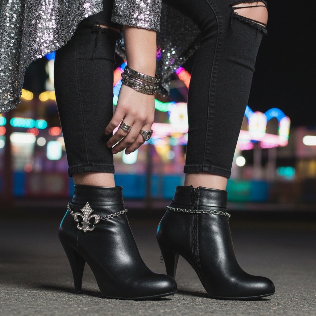 как выглядит Women Silver Metal 2PCS Boot Chain Bracelet Shoe Fleur De Lis Lily Charm Biker фото