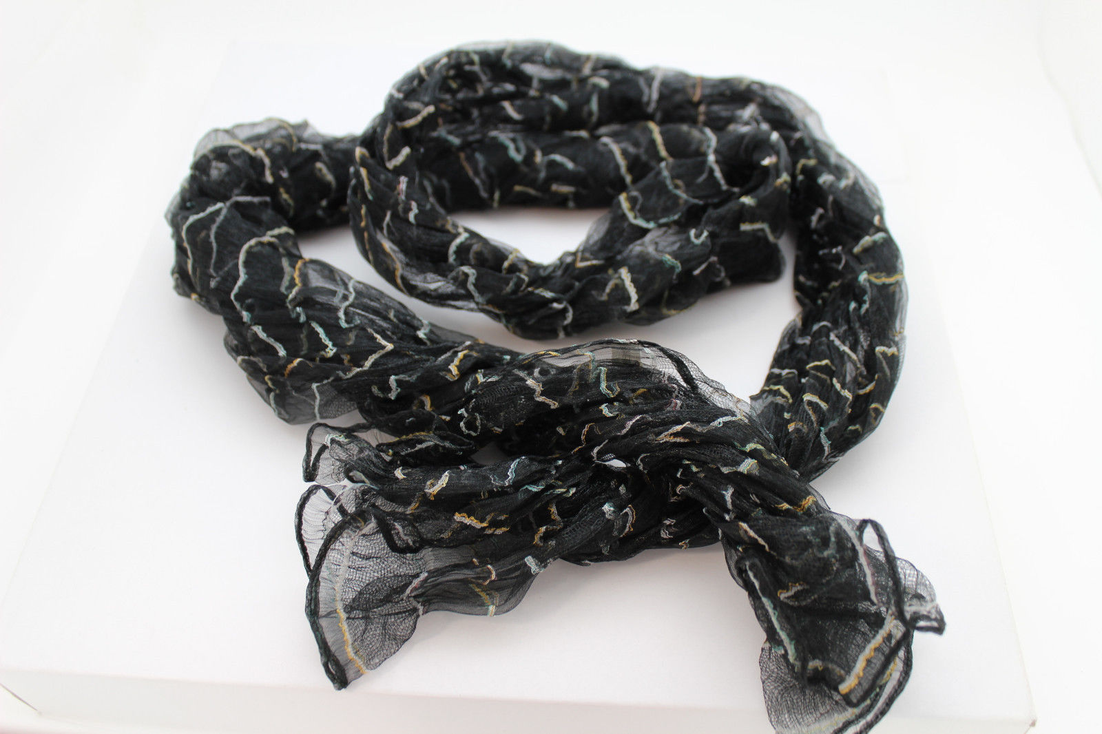 New Women Fashion Neck Scarf Sheer Fabric Light Long Striprs Black White Wrap