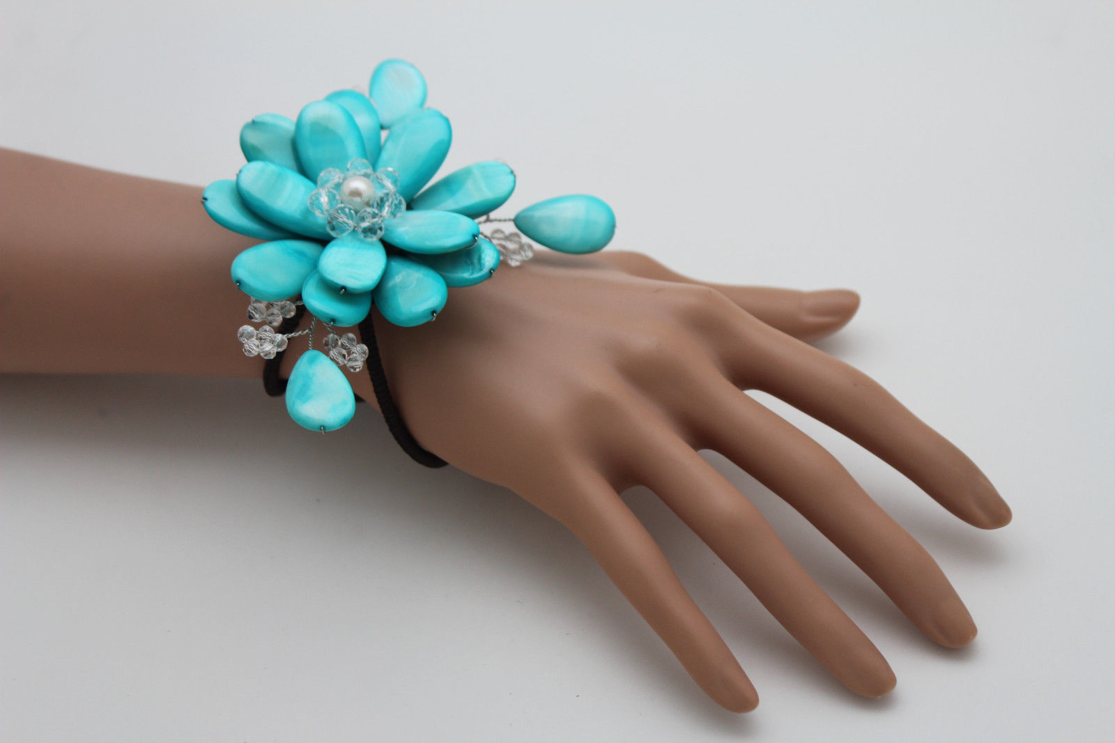 как выглядит Women Bracelet Turquoise Blue Beads Big Flower Charm Elastic Cuff Band Jewelry фото