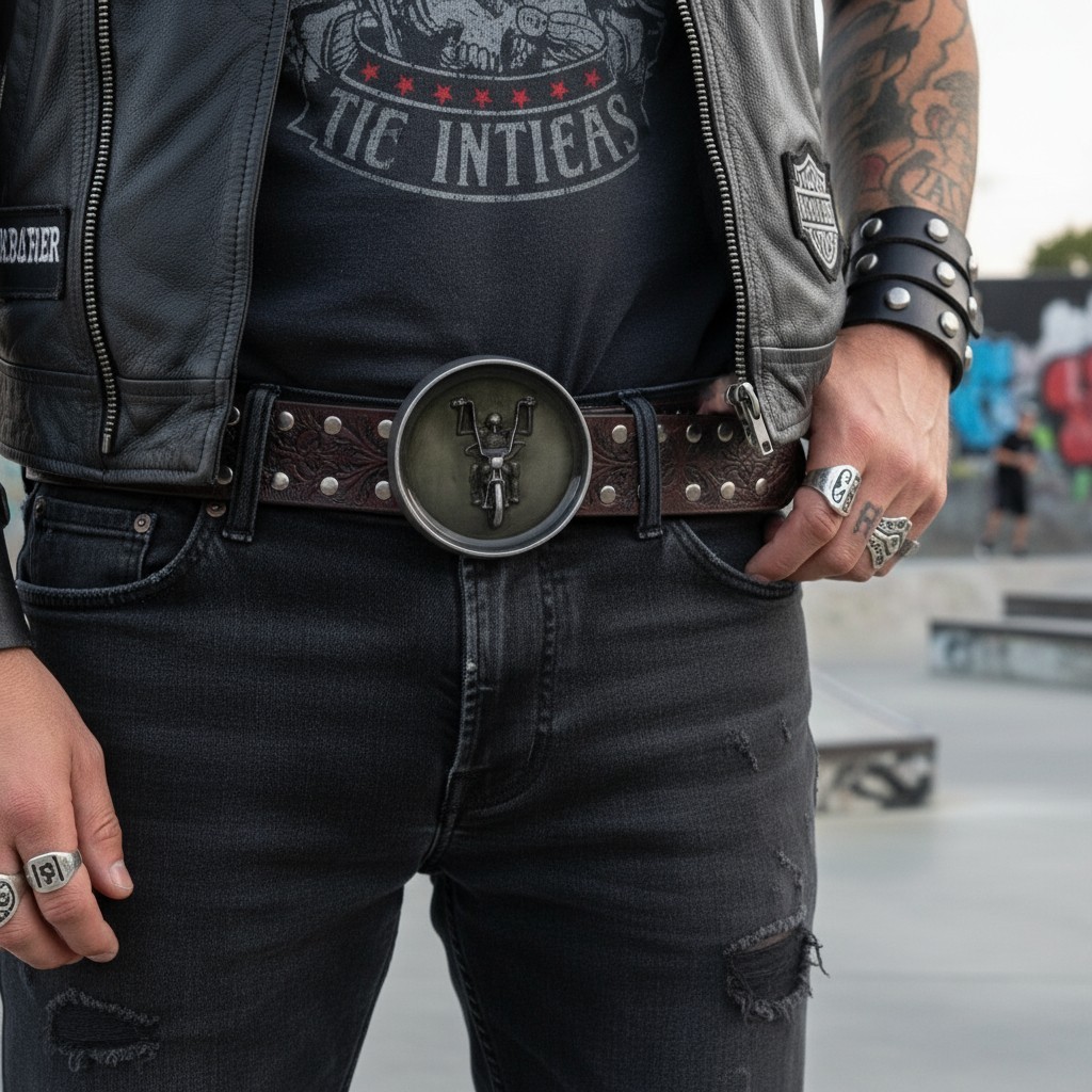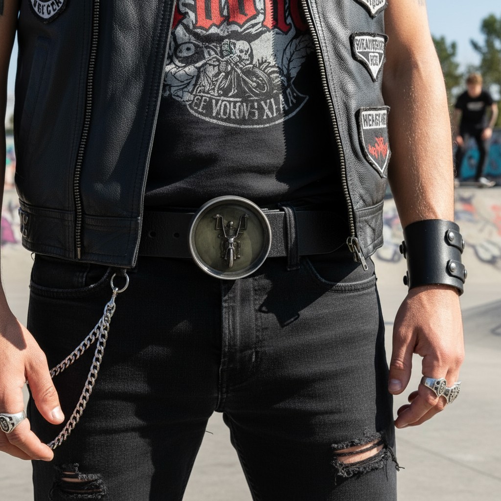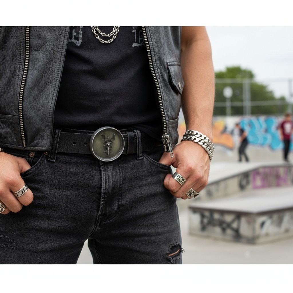 NEW Men Belt Buckle Silver Metal Heavy Grey Skeleton Skull Motorcycle Biker Bone