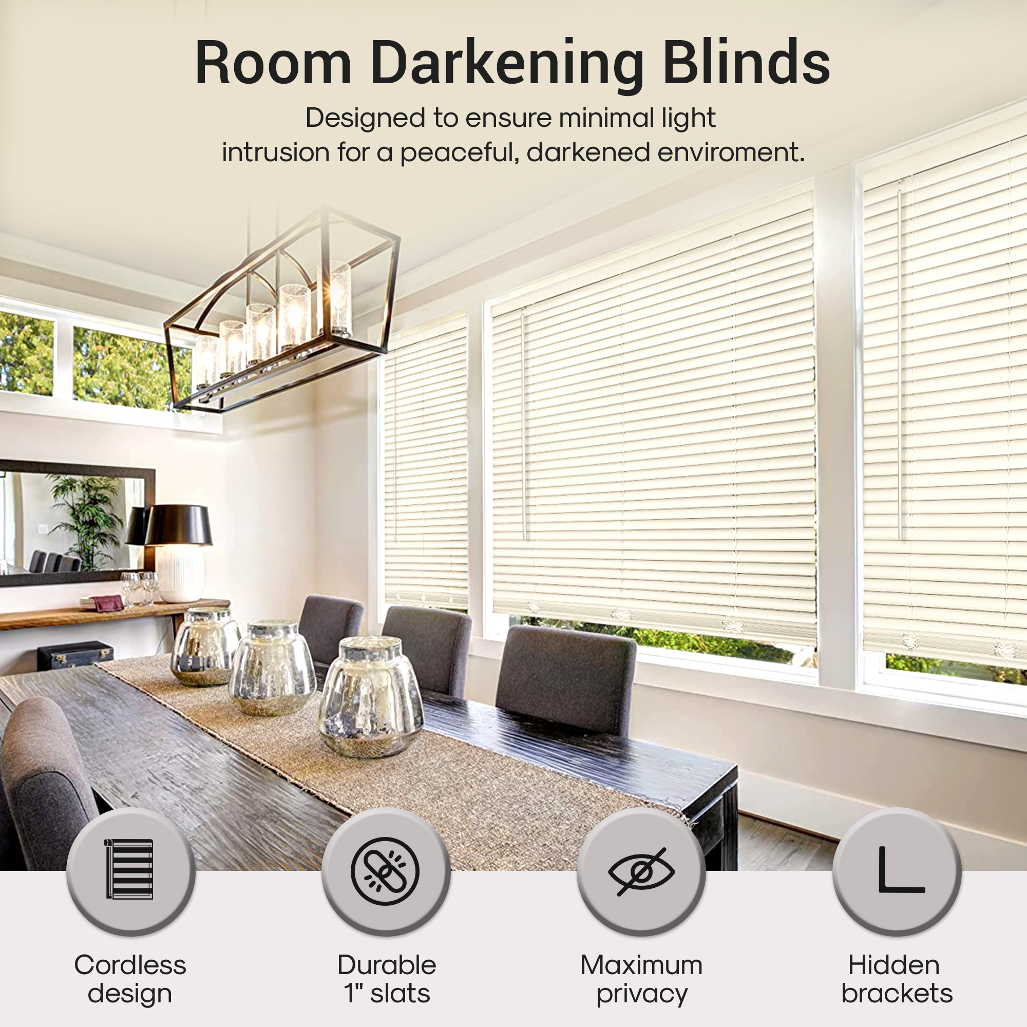 Cordless Window Mini Blinds 1 Slats Room Darkening Vinyl Blind 64 Length
