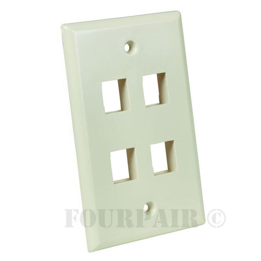 как выглядит 100 Pack Lot Keystone 4 Hole Port Jack Network Wall Face Plate CAT5e CAT6 Almond фото