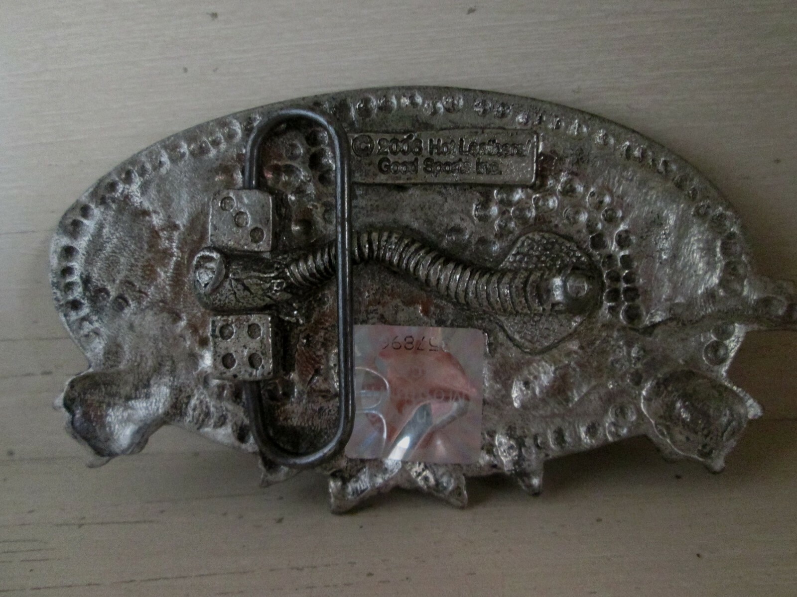 как выглядит 2006 Genuine Mobtown Chicago MOTORCYCLE BELT BUCKLE Flames Roses HOT LEATHERS фото