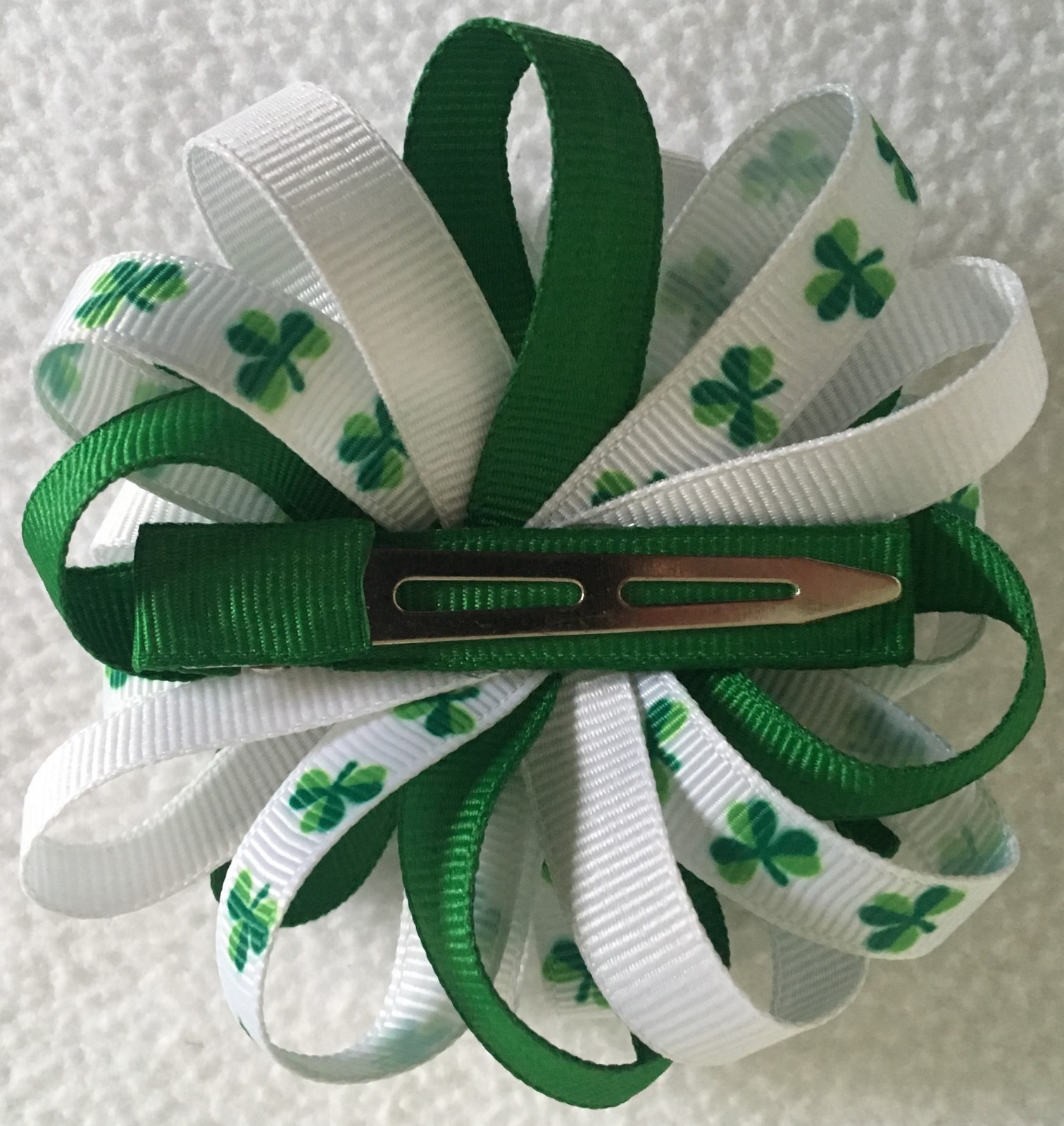 Girls Hair Bow 3 1/2 St Patrick's Flower Bow Shamrock Flatback Alligator Clip