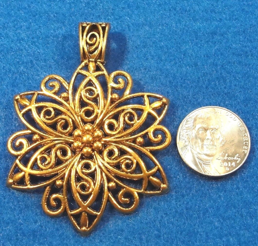 как выглядит 4Pcs. Tibetan Antique Gold FLOWER Charms LARGE Pendants Jewelry Findings FL19 фото