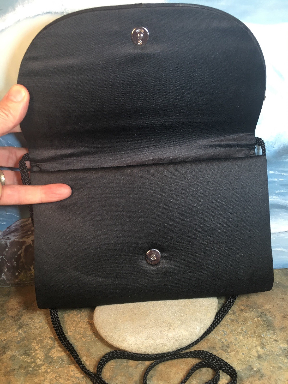 как выглядит la Regale vintage clutch black satin purse jeweled Excellent Used Condition фото