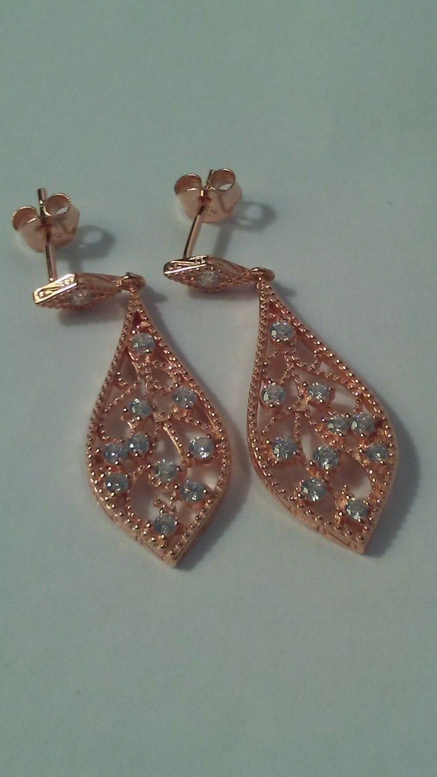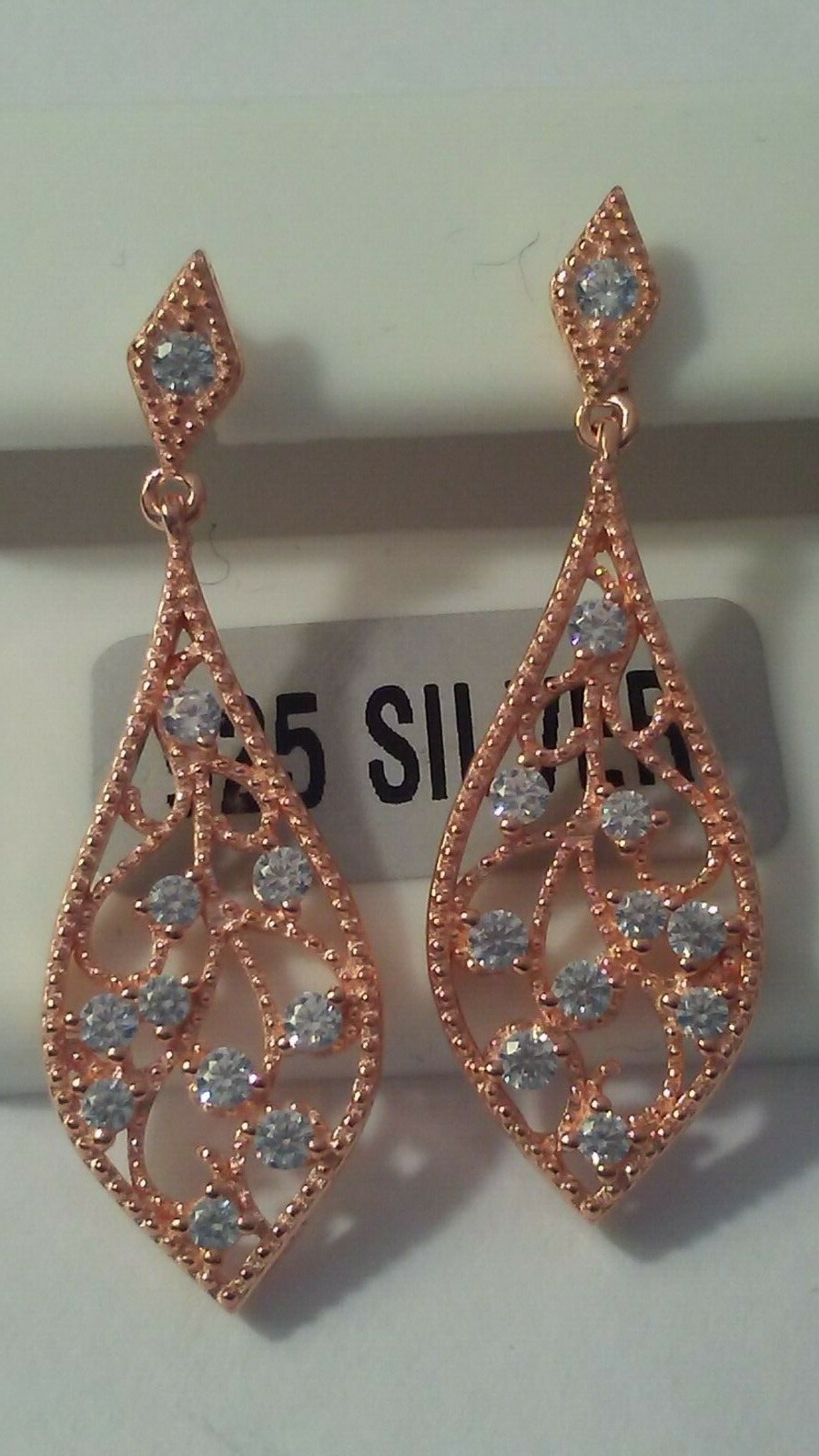 как выглядит 925 STERLING SILVER ROSE GOLD plated Fancy DANGLE earrings Filigree CZ stones фото
