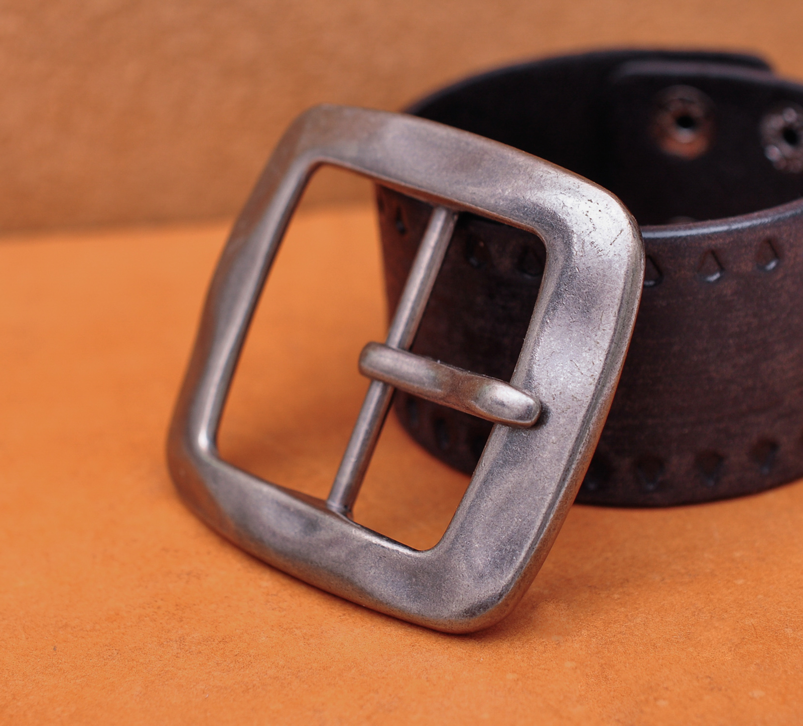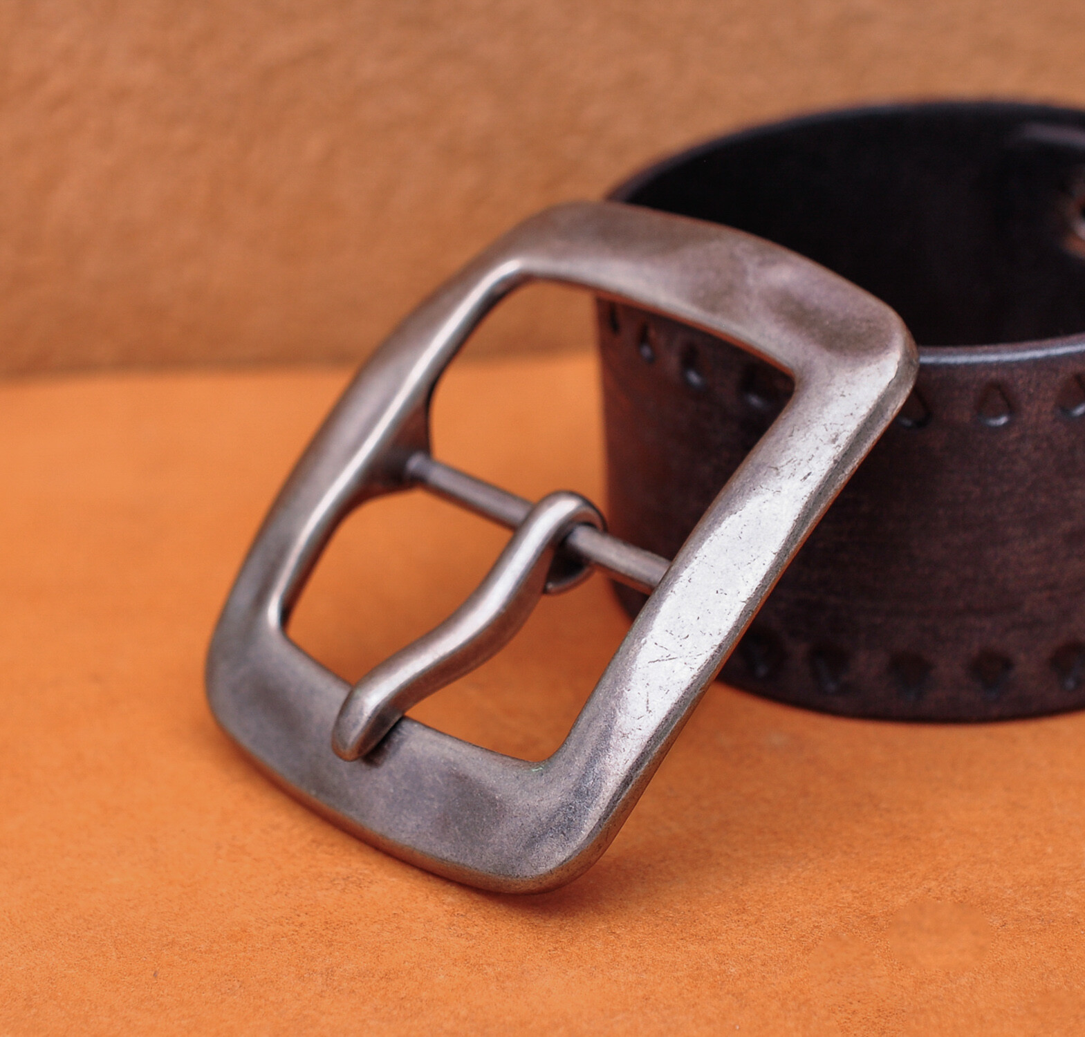 Vintage Silver Square Center Bar Pin Buckle for Leathercraft Belt Fit 40mm Strap