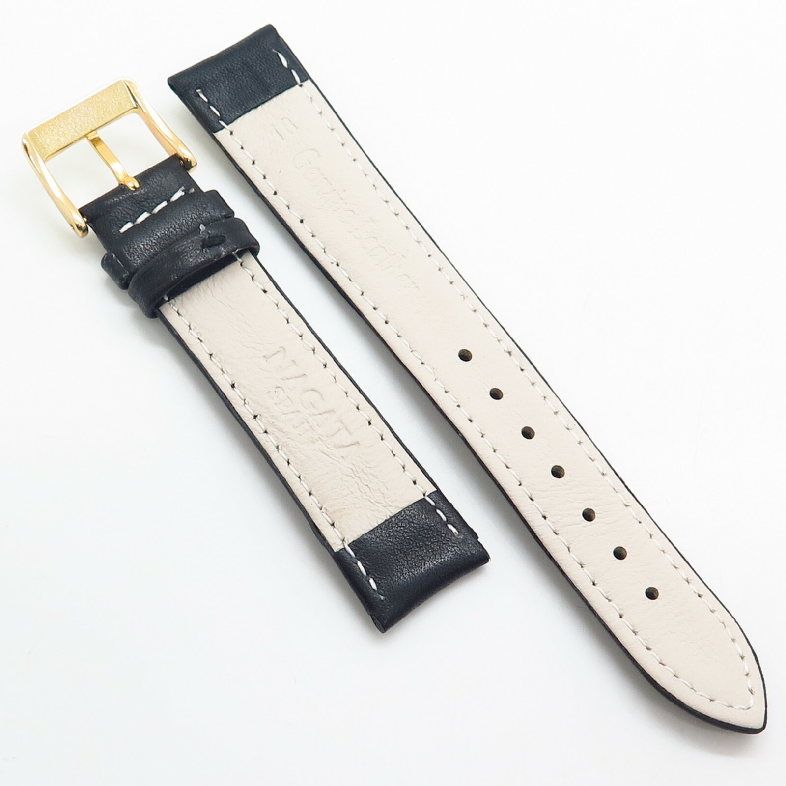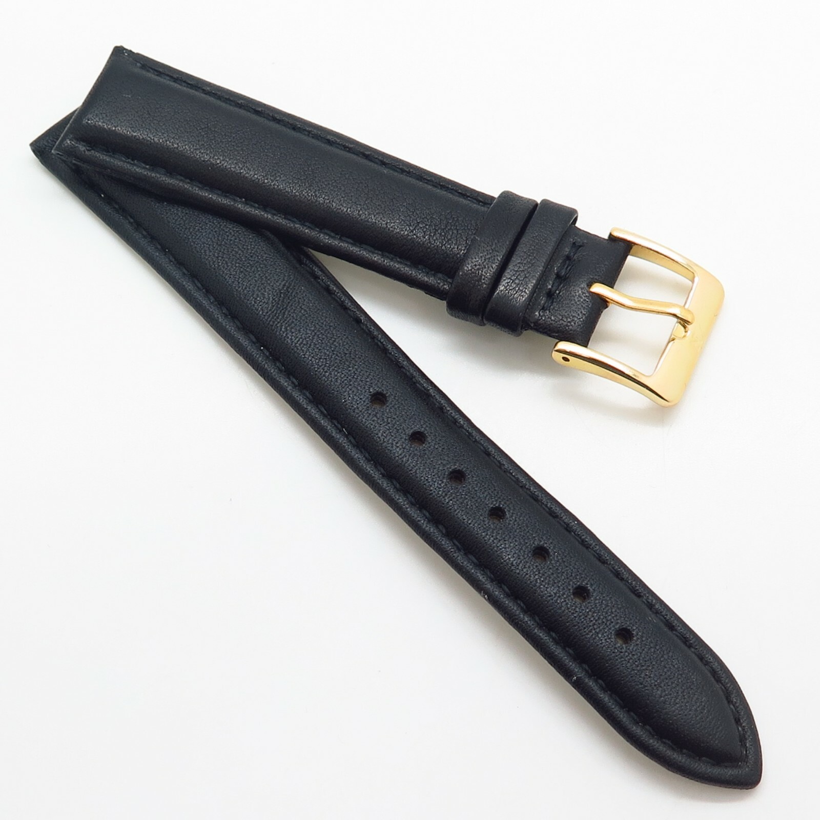 18mm NAGATA Black Genuine Leather Gold Tone Classic Watch Band